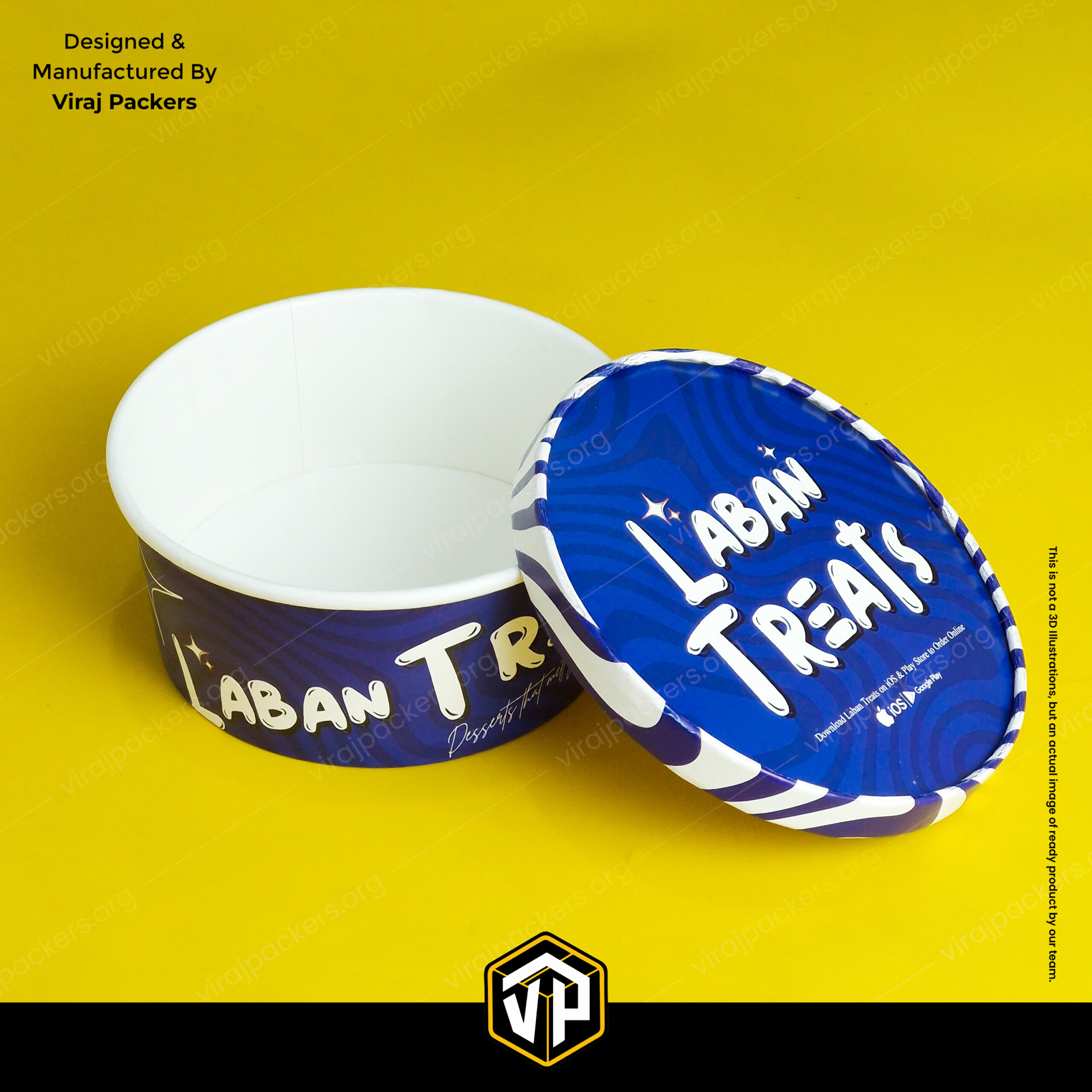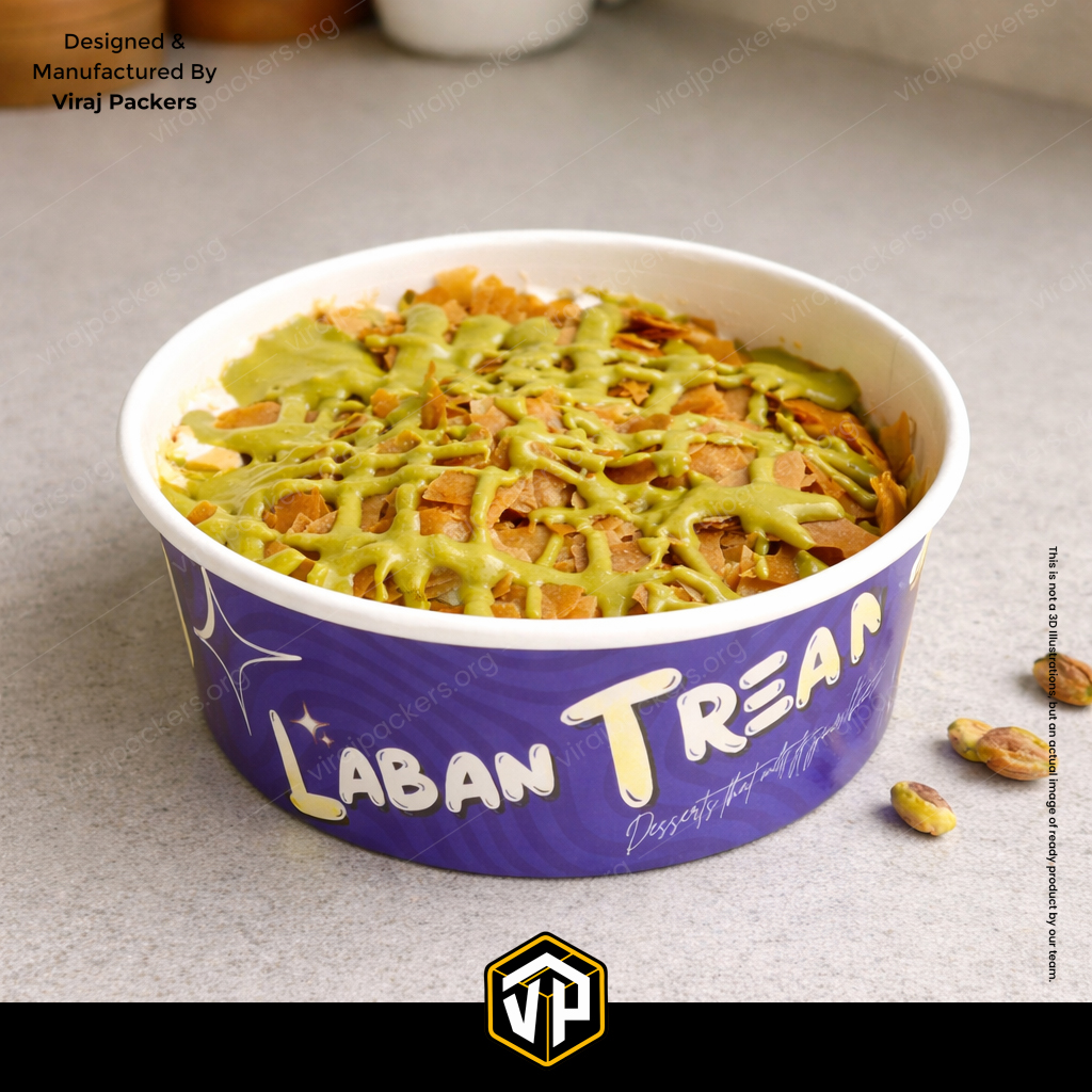 B Laban Dessert Container is a premium round paper bowl designed for serving viral Dubai-style desserts and modern food concepts.