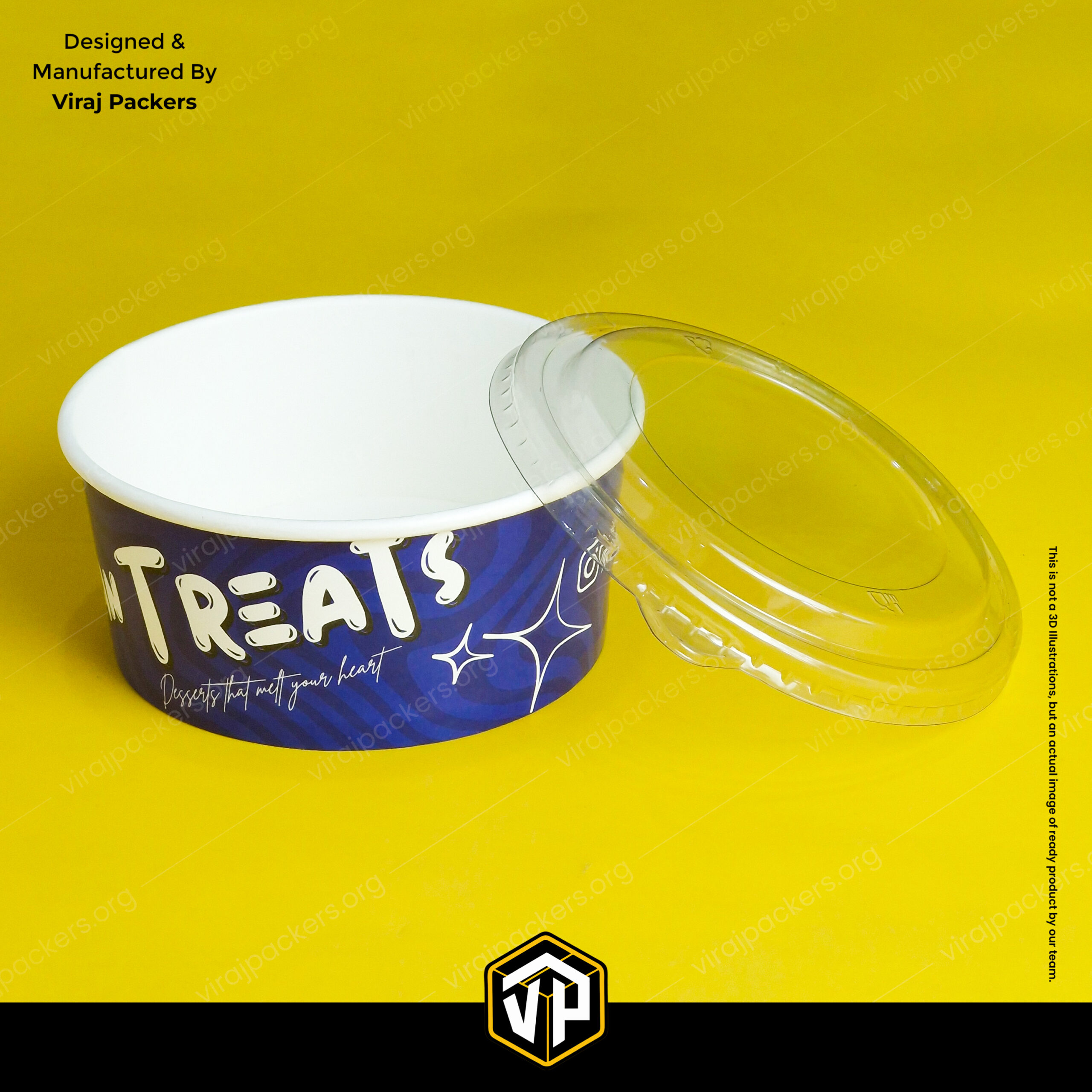 This food-grade dessert container is made from high-quality paper material, ensuring safe, hygienic, and durable packaging. It comes with two lid options – a transparent plastic lid for product visibility and a printed paper lid for enhanced branding.