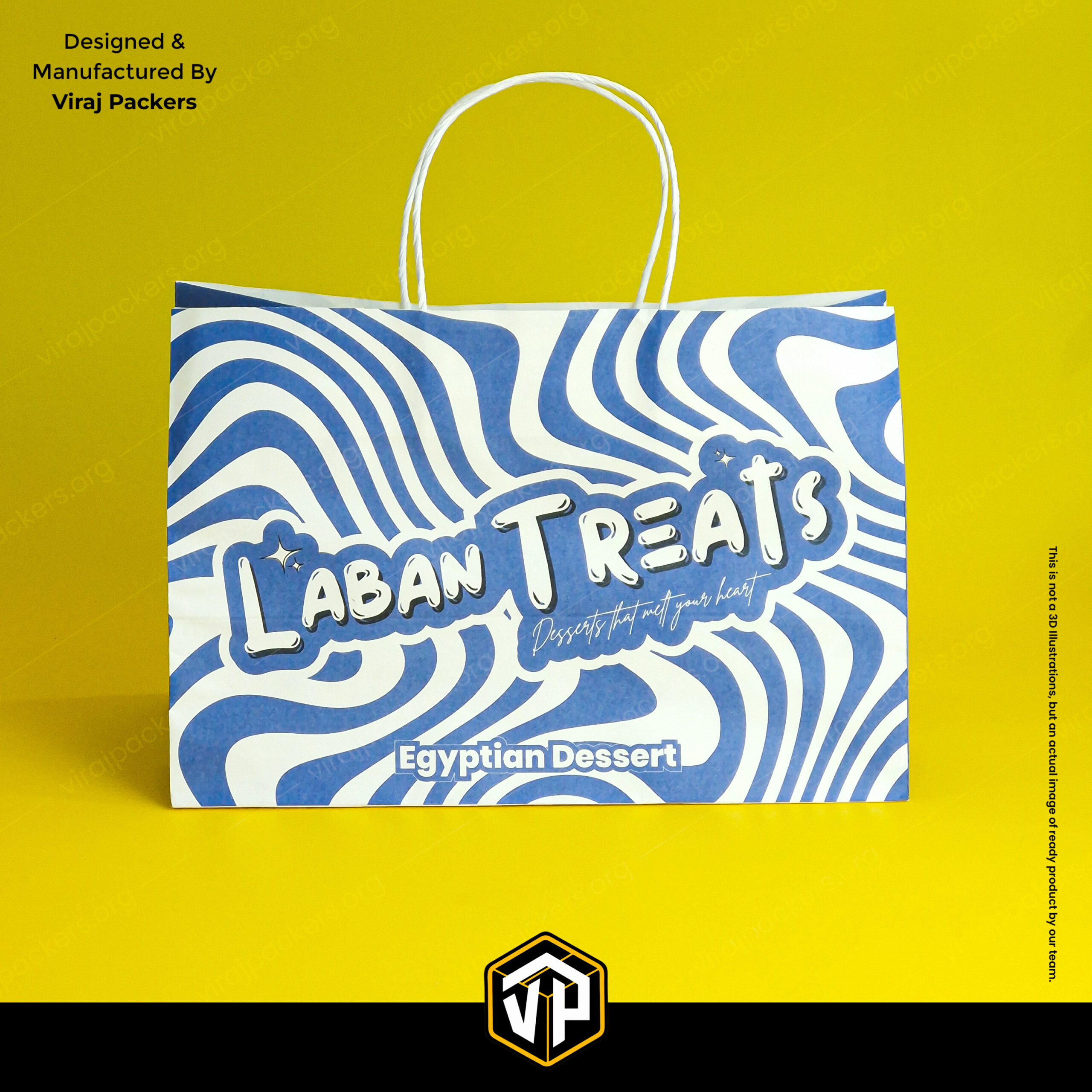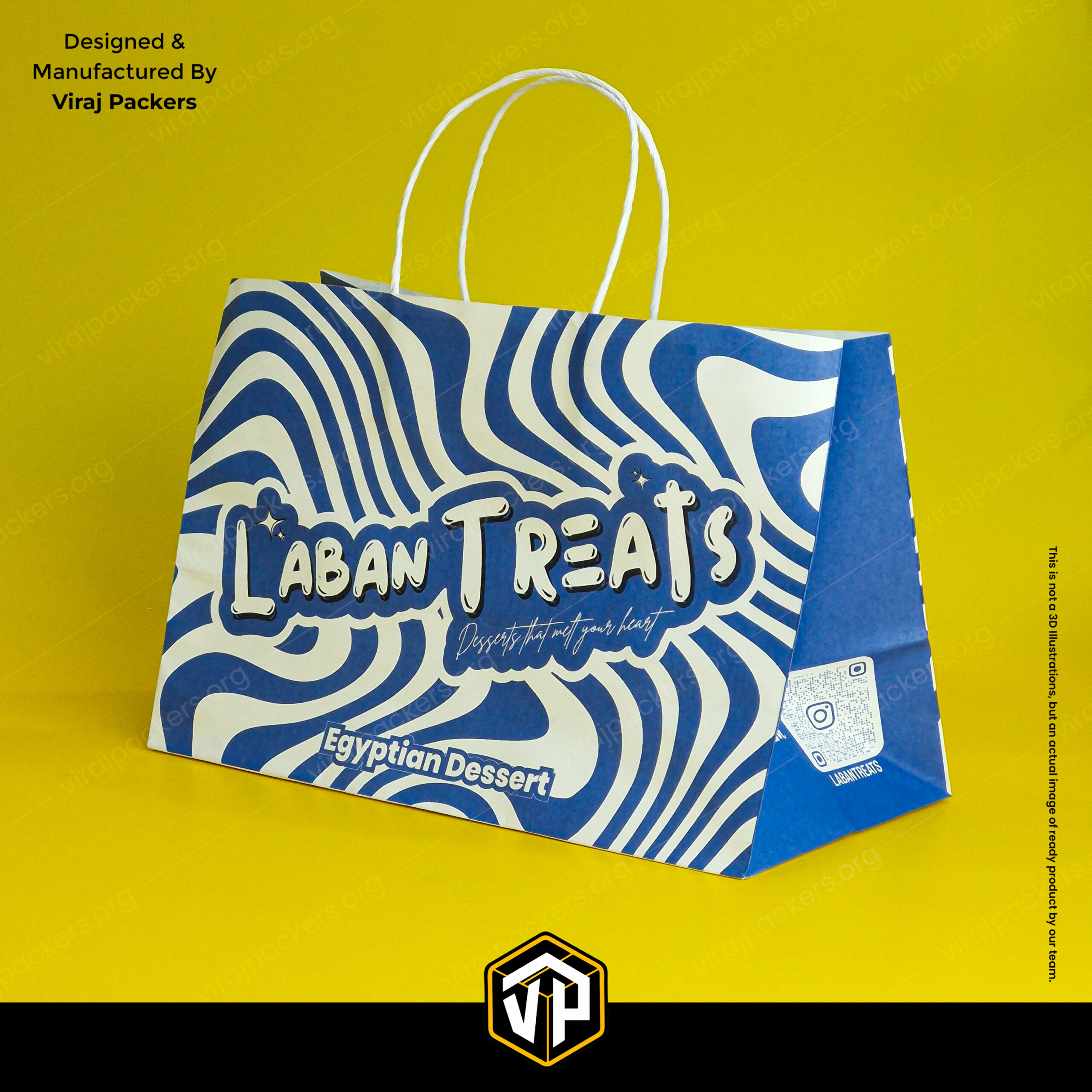 B Laban Paper Bag with Handle is a premium packaging solution designed for dessert brands, cafes, and takeaway businesses using the popular B Laban concept.