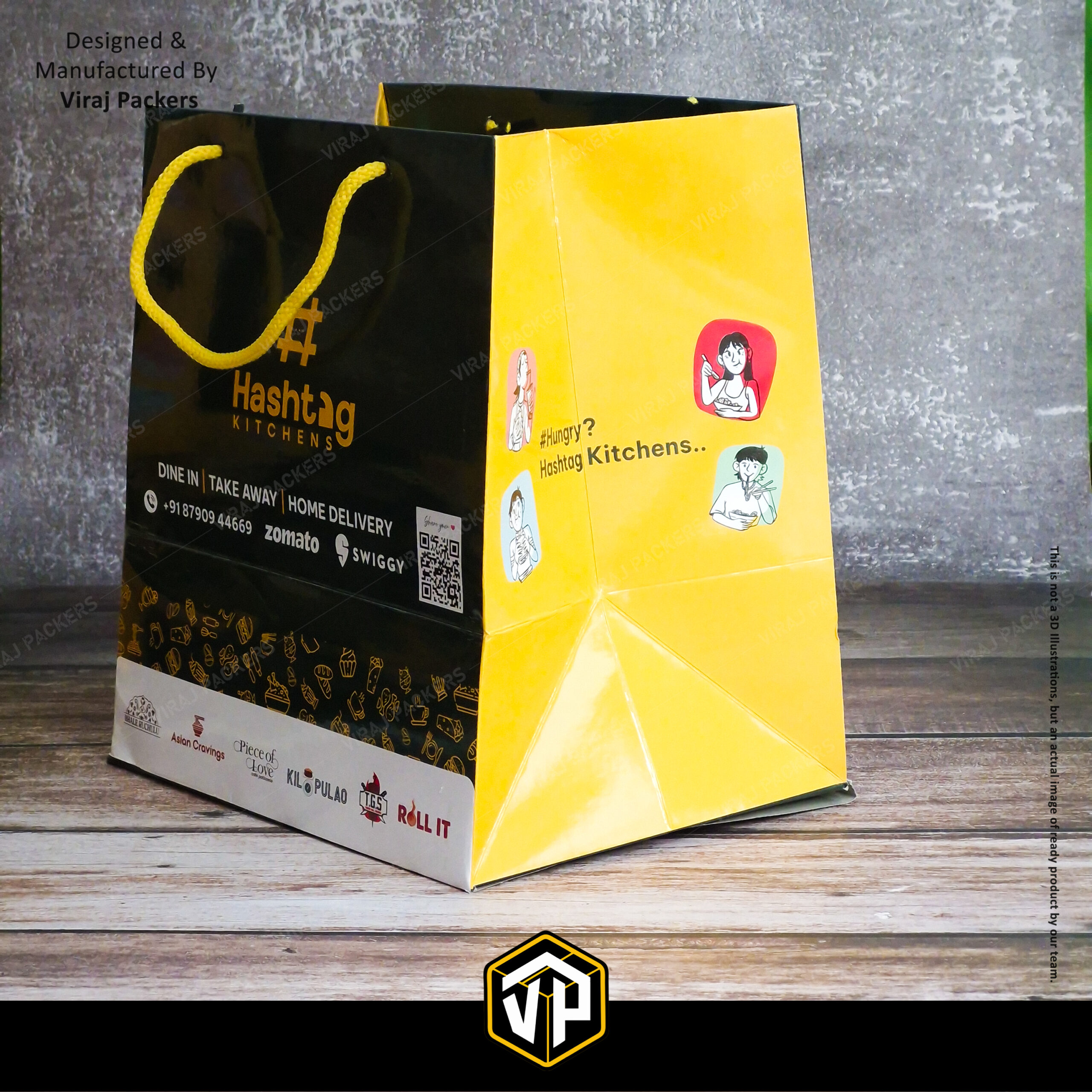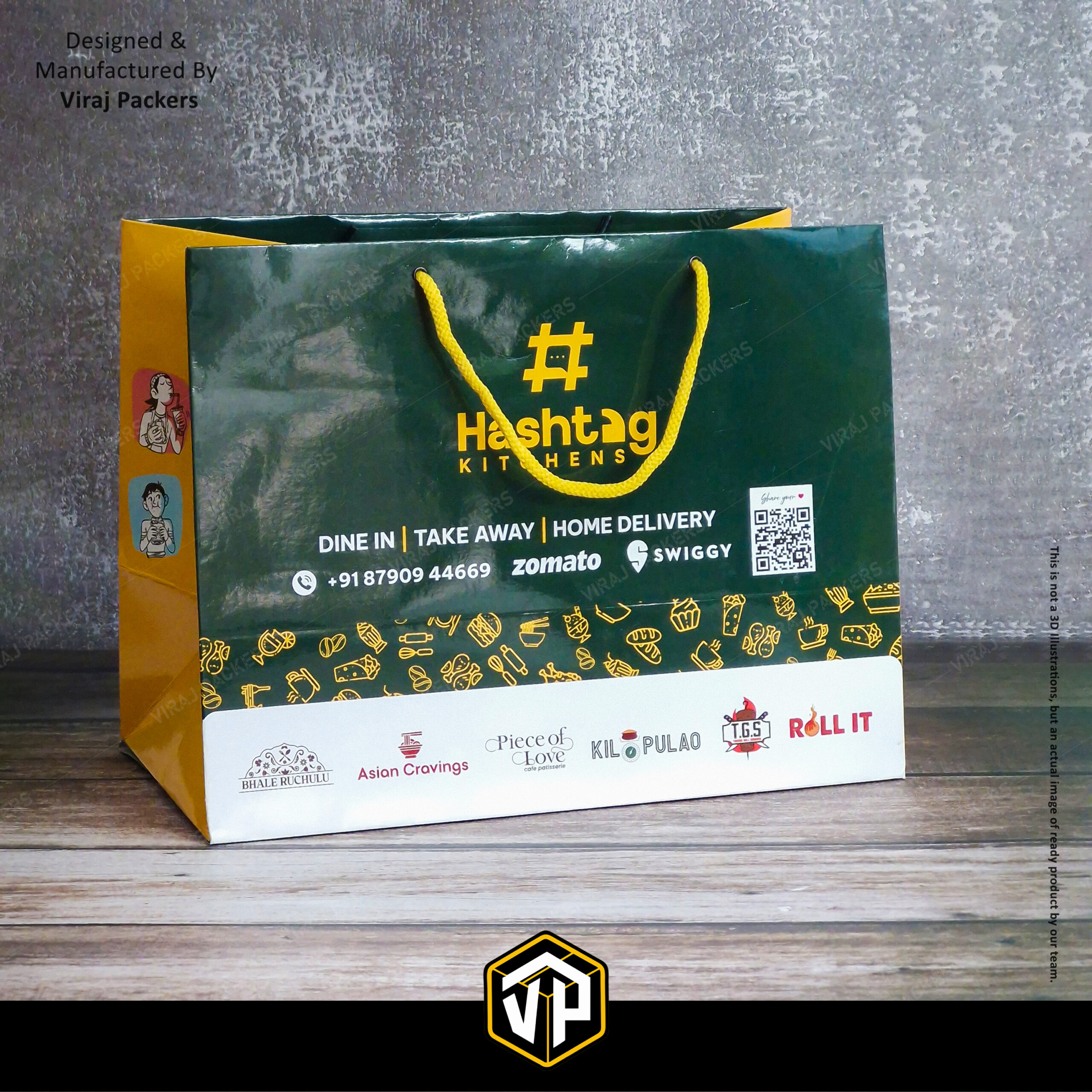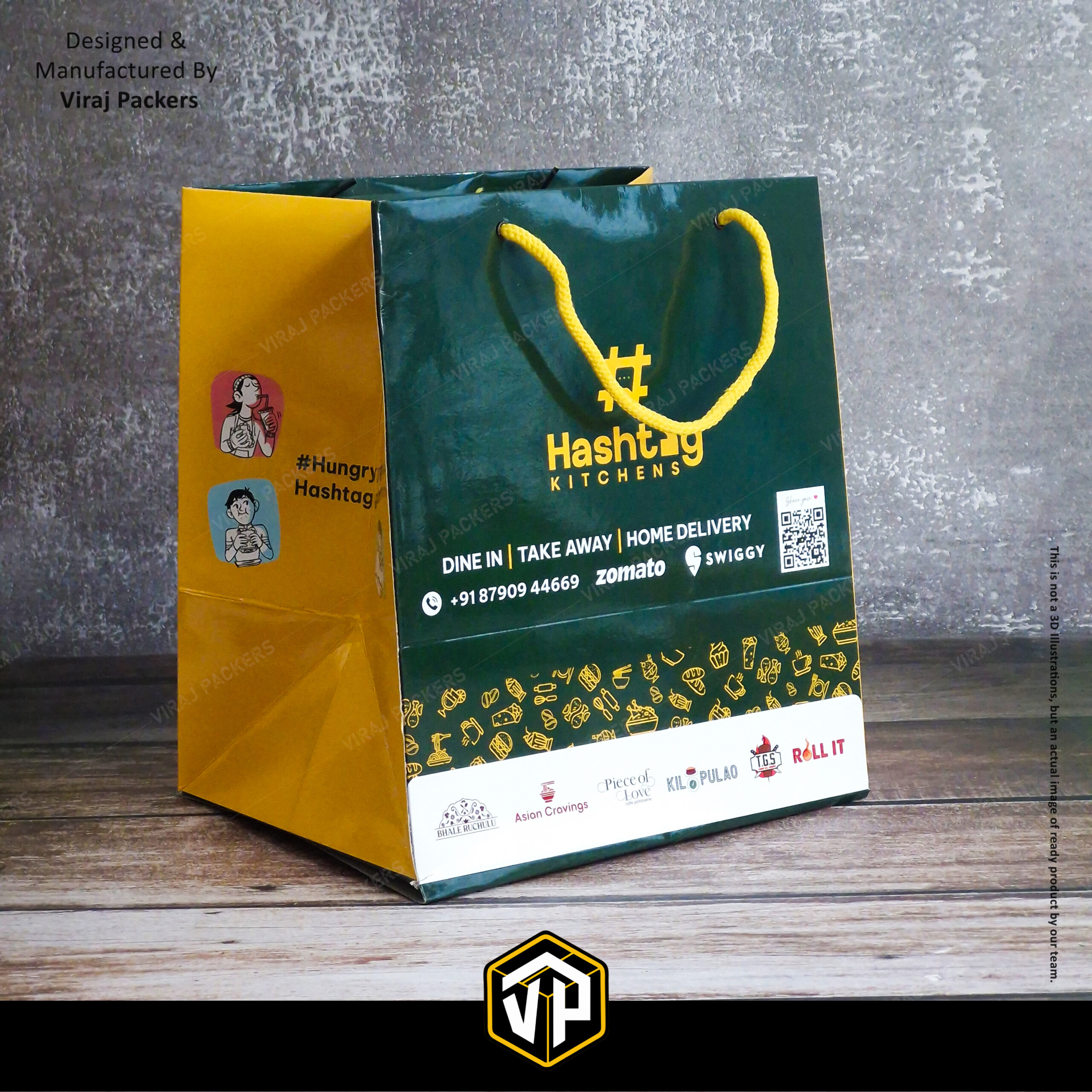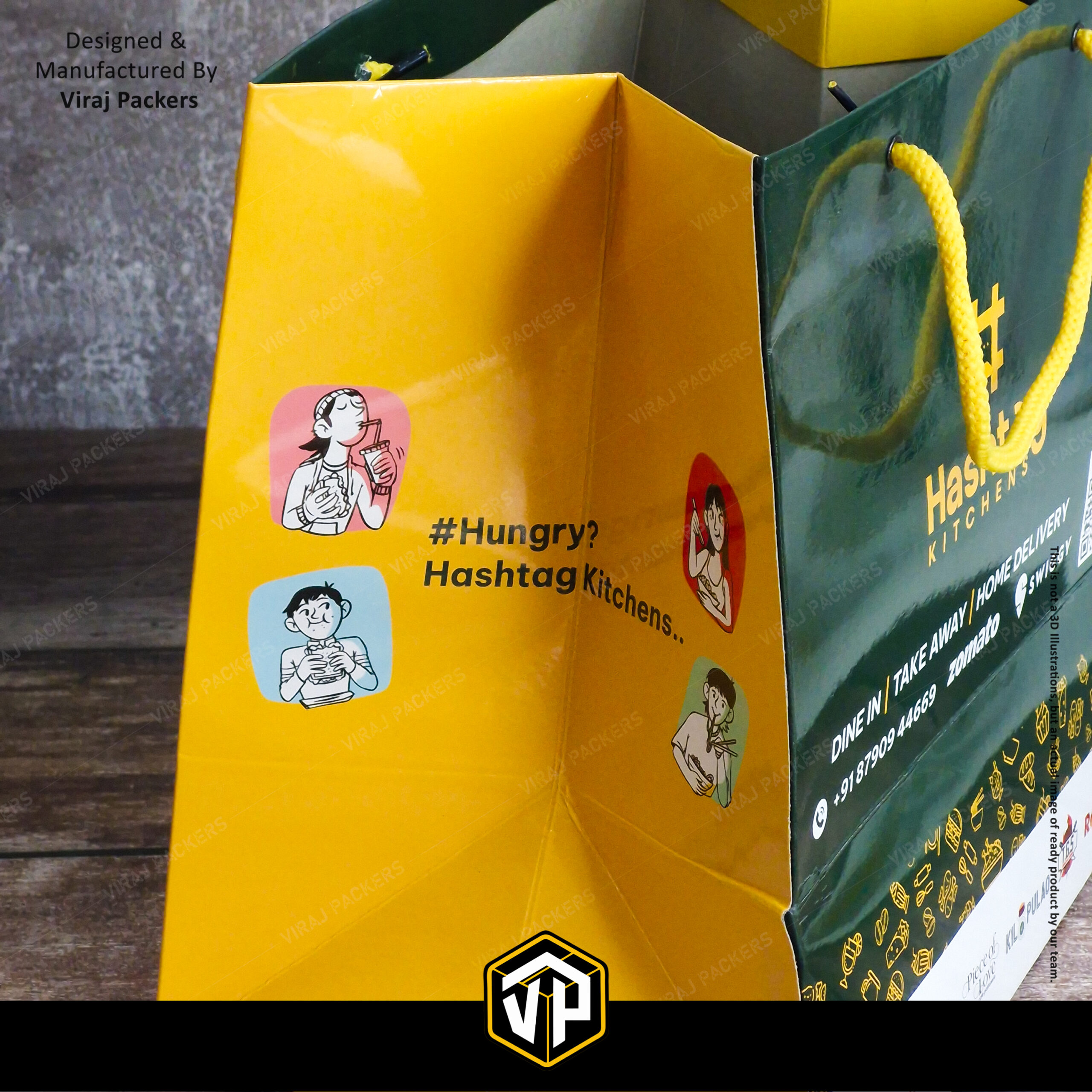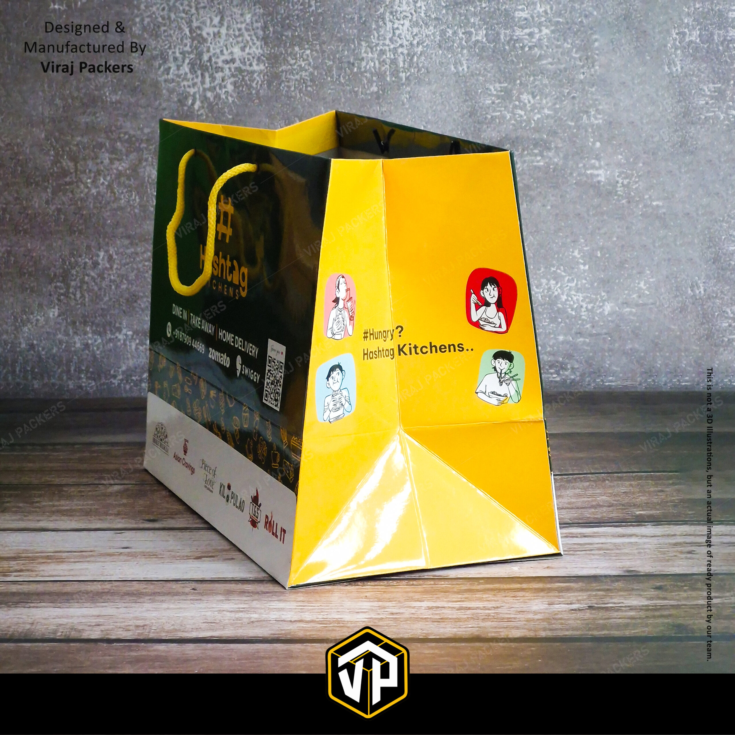 With custom logo printing, multi-color branding, QR code integration, and partner brand display, these laminated carry bags are perfect for Swiggy, Zomato, and direct delivery packaging. Suitable for domestic as well as export-quality requirements, including USA and international markets.