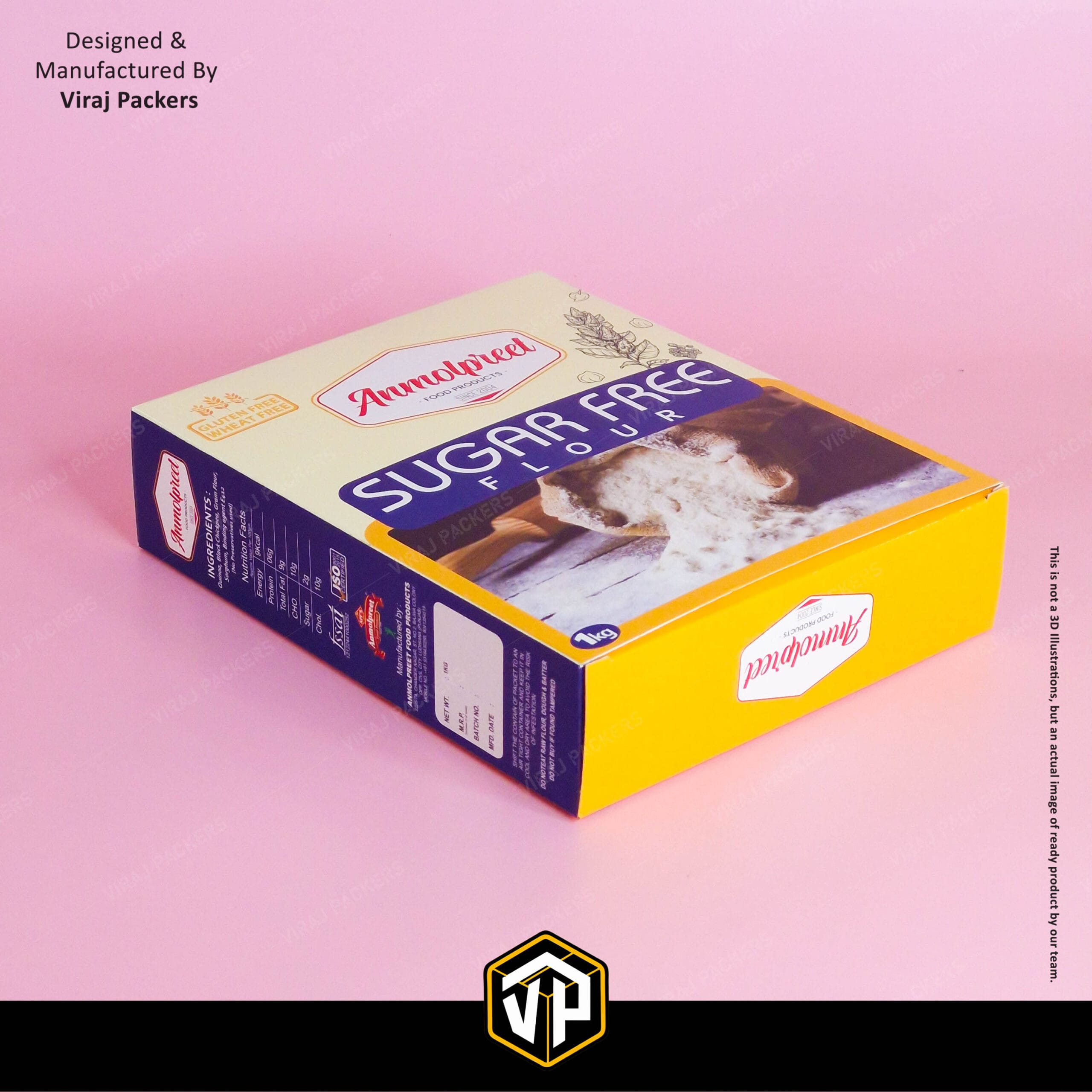 Perfect for wheat flour, multigrain flour, besan, and other specialty flours, our packaging boxes are eco-friendly, recyclable, and market-ready. Whether you are targeting retail stores, supermarkets, or e-commerce platforms, our 1Kg flour packaging boxes help your brand stand out and build customer trust.