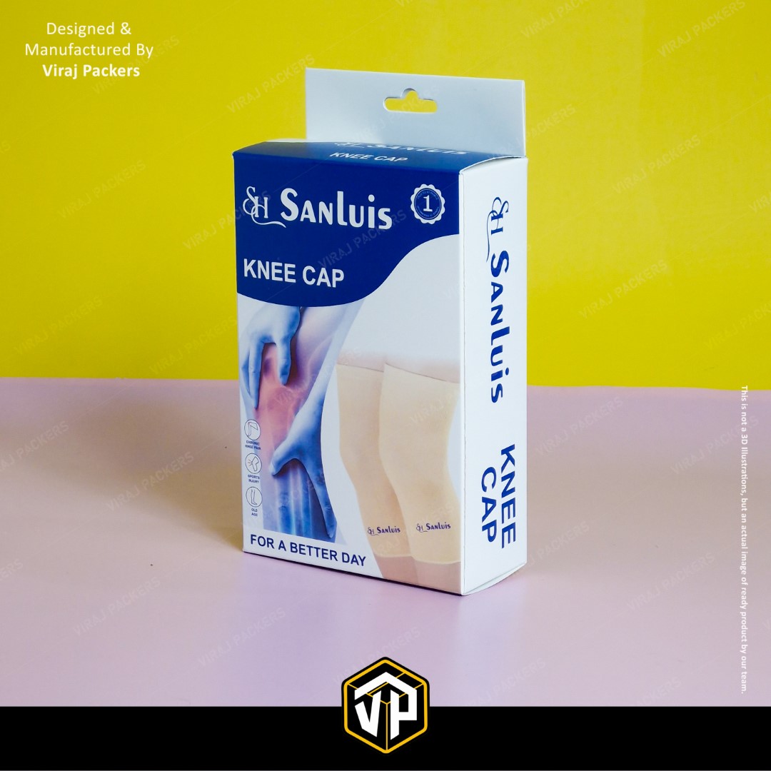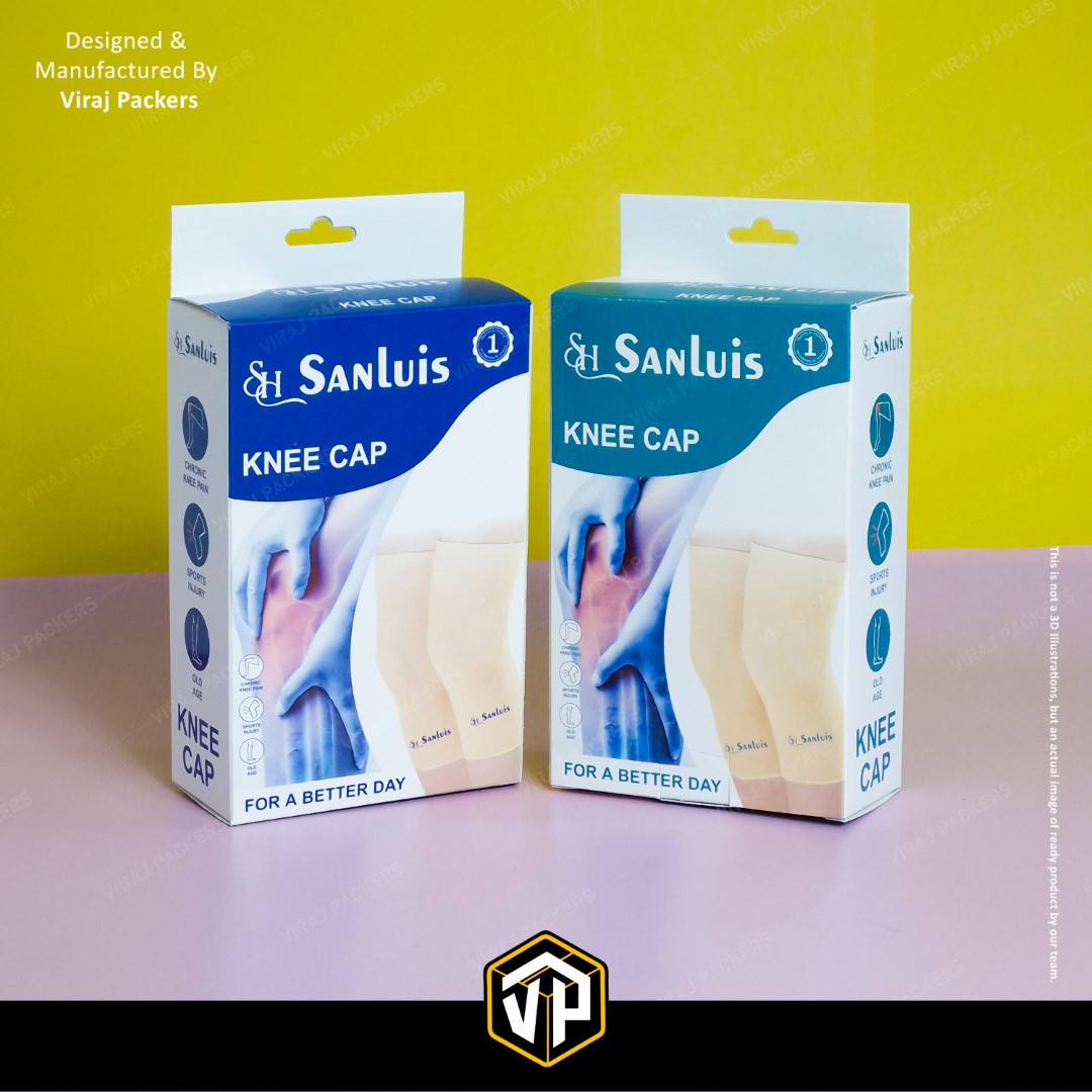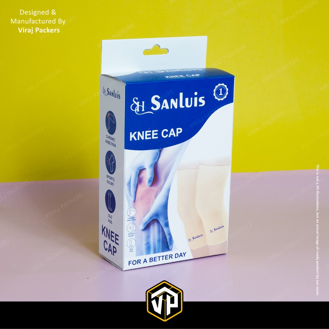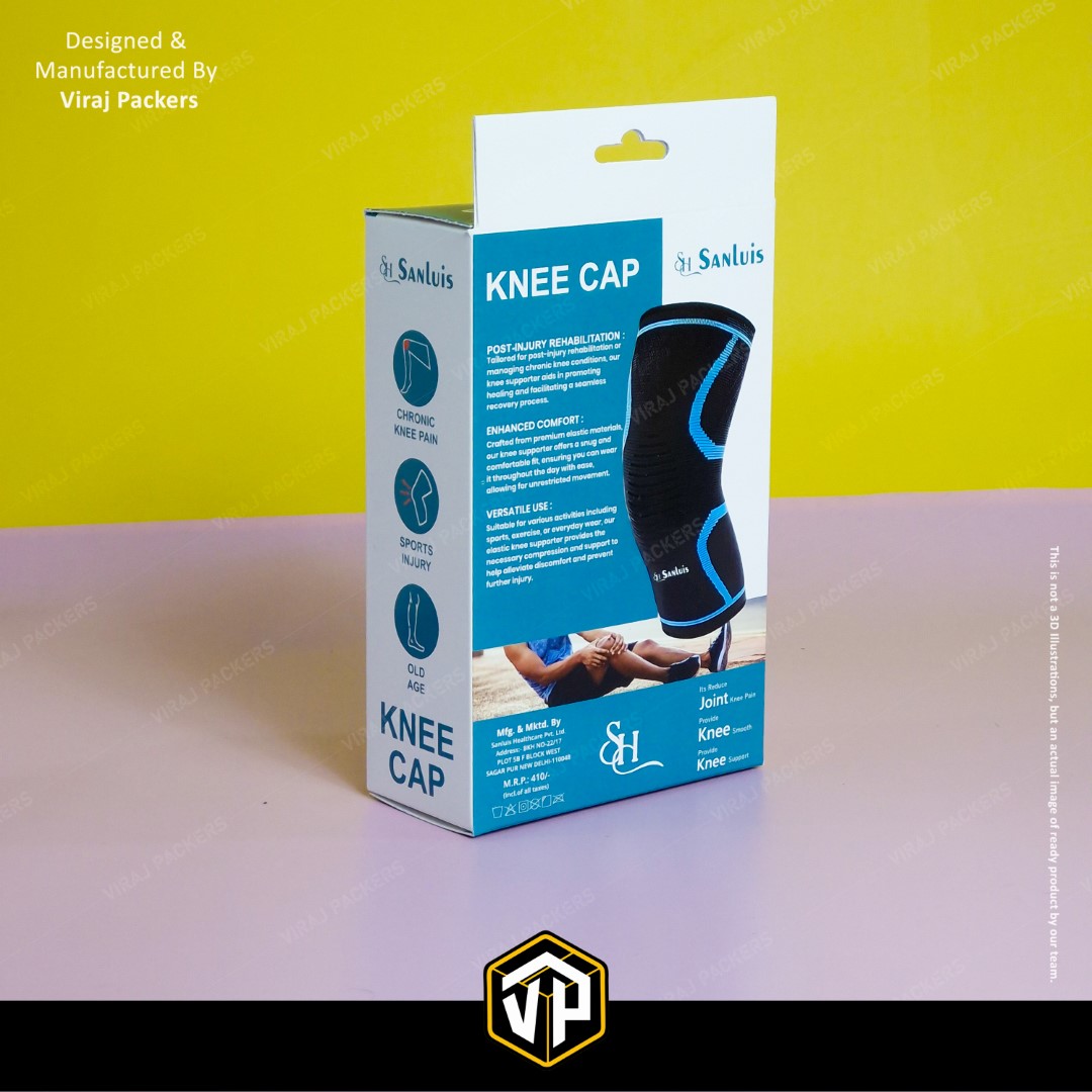 Presenting our Custom Printed Knee Cap Box, specially designed for orthopedic and healthcare products. Manufactured by Viraj Packers, this Ortho Packaging Box with Hanging Notch offers both functionality and brand appeal — allowing easy retail display and durable protection for medical products.