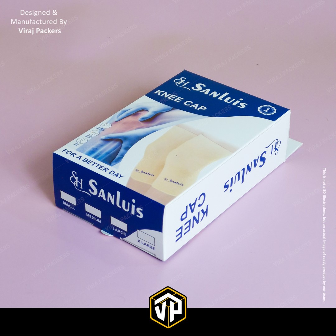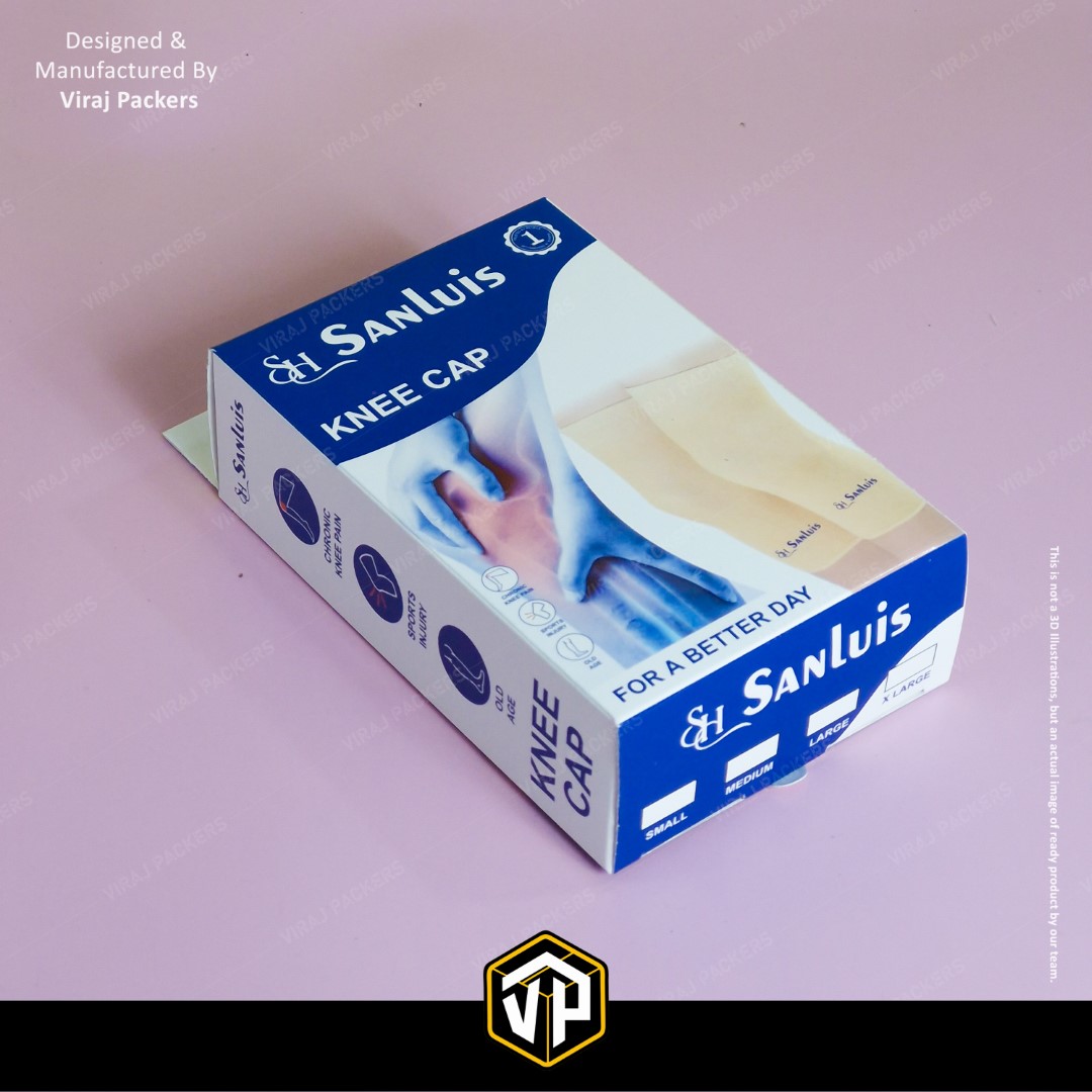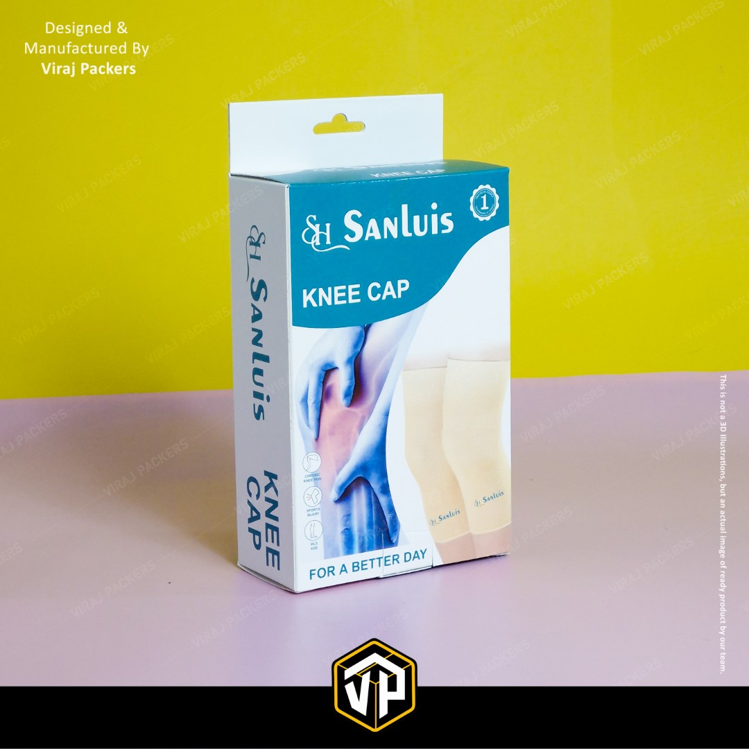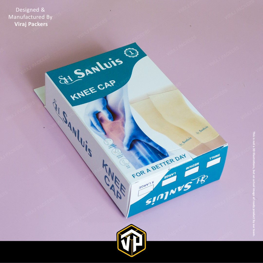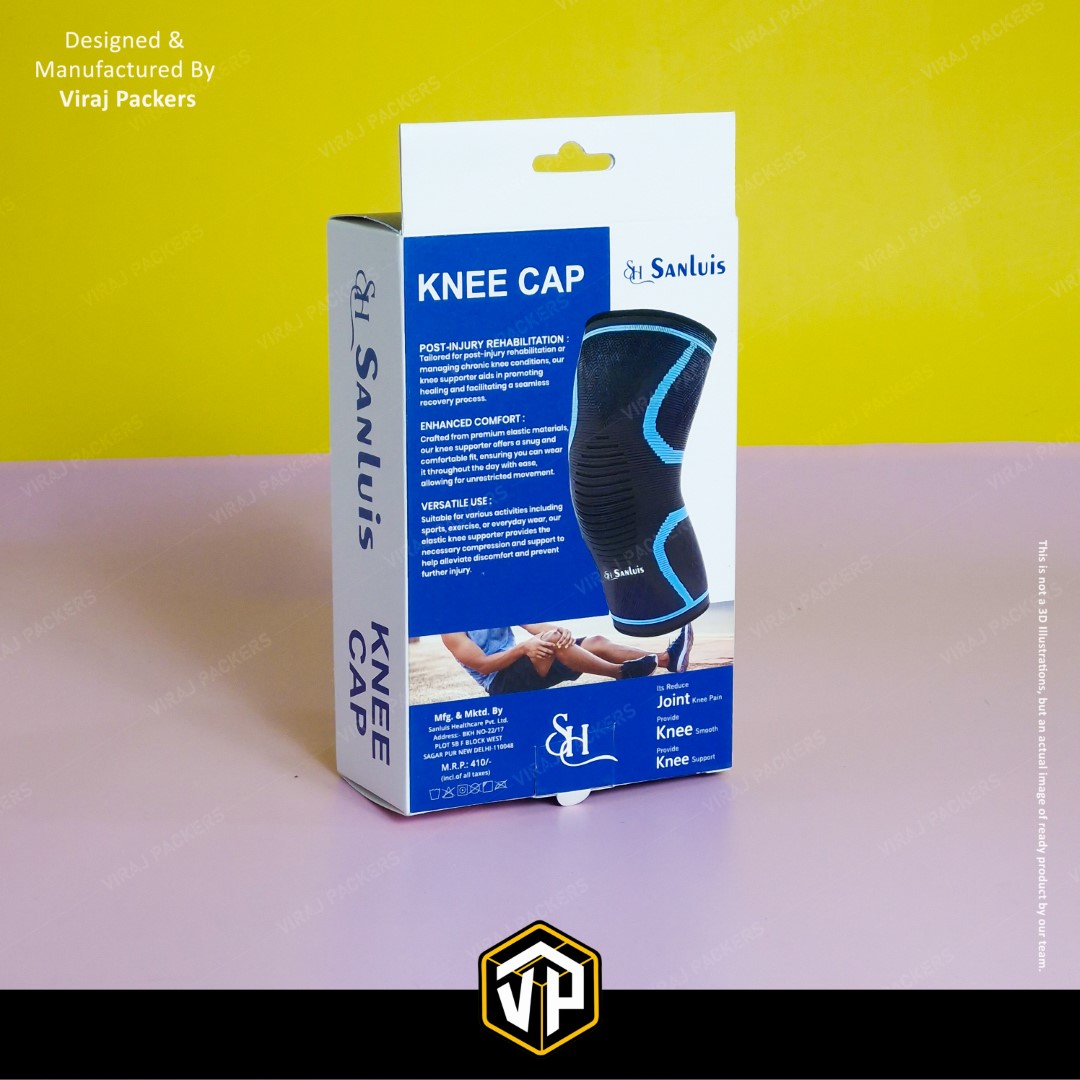 Presenting our Custom Printed Knee Cap Box, specially designed for orthopedic and healthcare products. Manufactured by Viraj Packers, this Ortho Packaging Box with Hanging Notch offers both functionality and brand appeal — allowing easy retail display and durable protection for medical products.