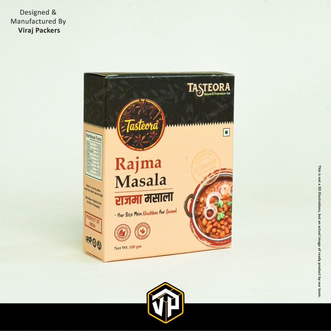 At Viraj Packers, we provide custom printing options so you can showcase your brand logo, nutritional details, and attractive designs that stand out on retail shelves. With durable locking flaps and eco-friendly material, our spice packaging solutions are perfect for wholesalers, retailers, and export businesses.