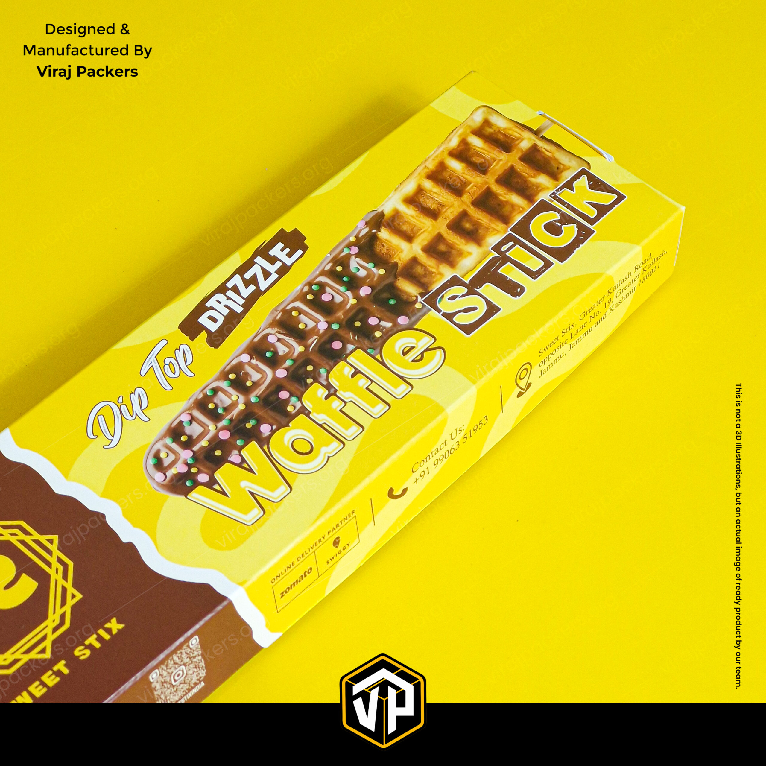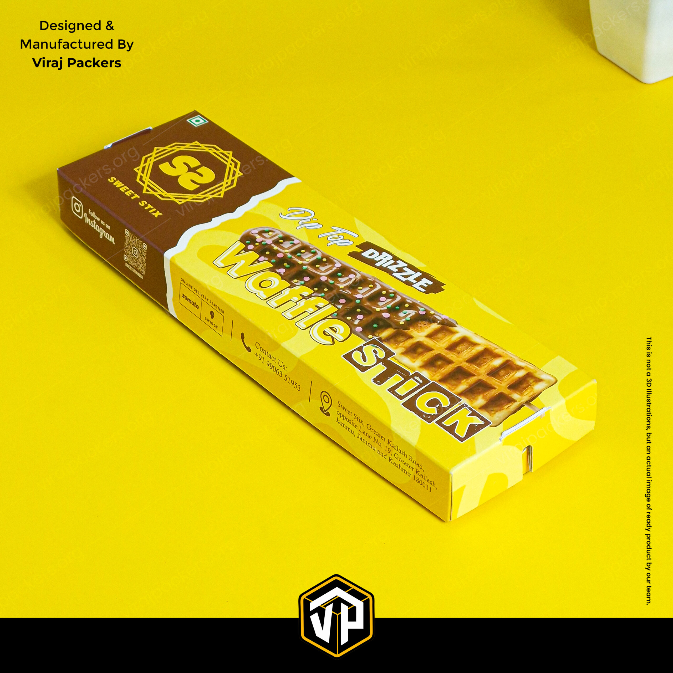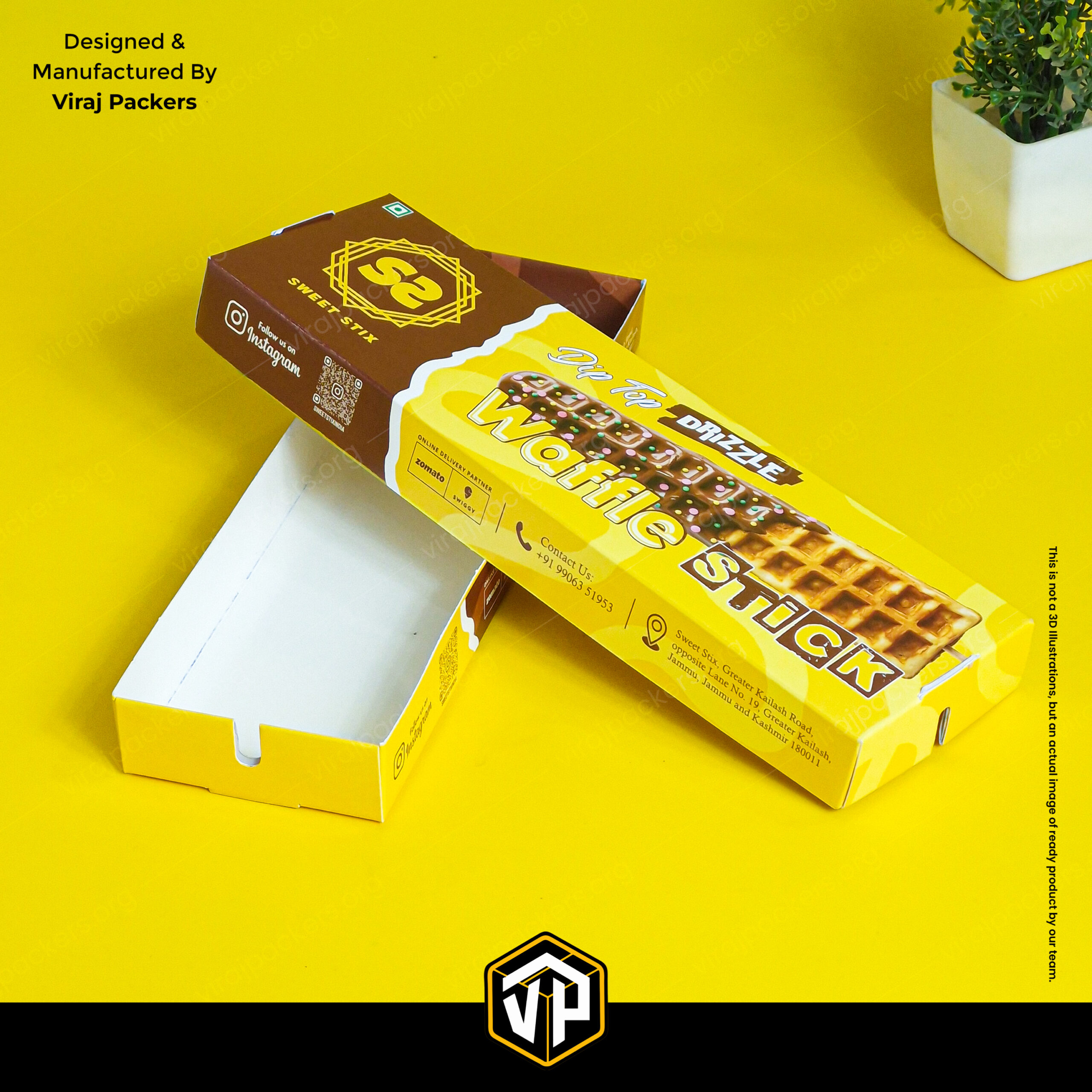 At Viraj Packers – Leading Food Packaging Manufacturers in India, we offer high-quality, food-grade waffle boxes that perfectly hold stick waffles without leakage or mess. These boxes come with a smart grip design, making them ideal for customers to enjoy waffles on the go.