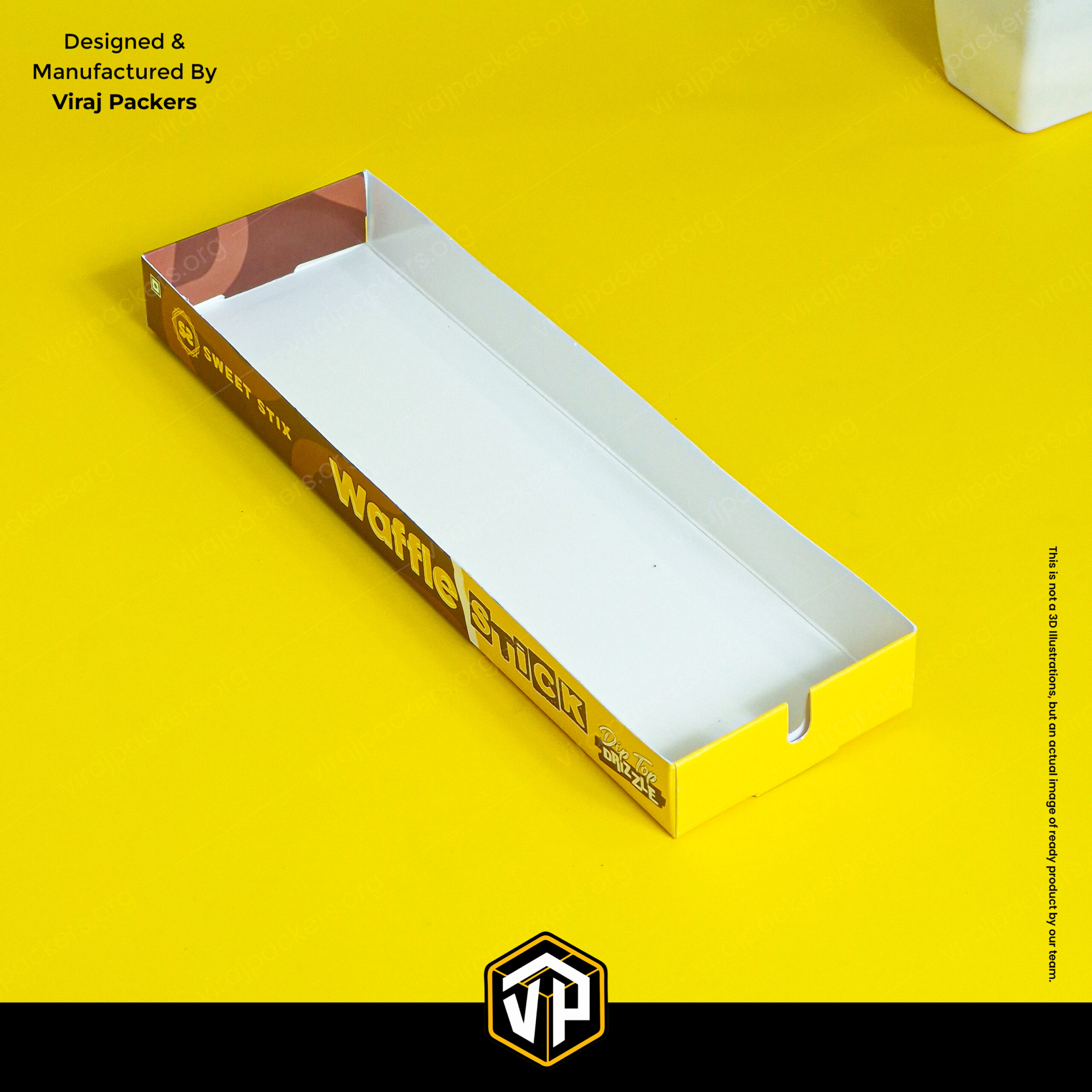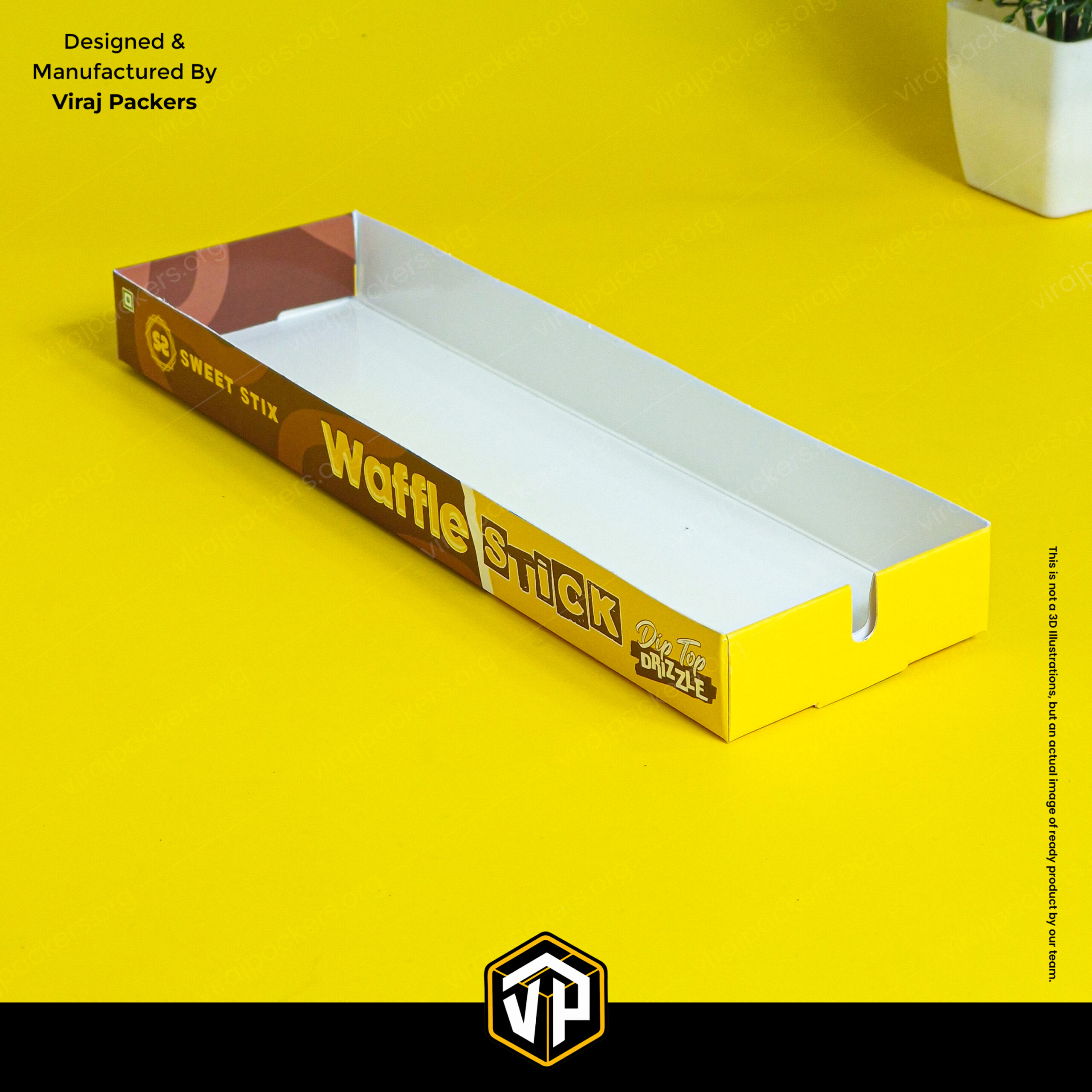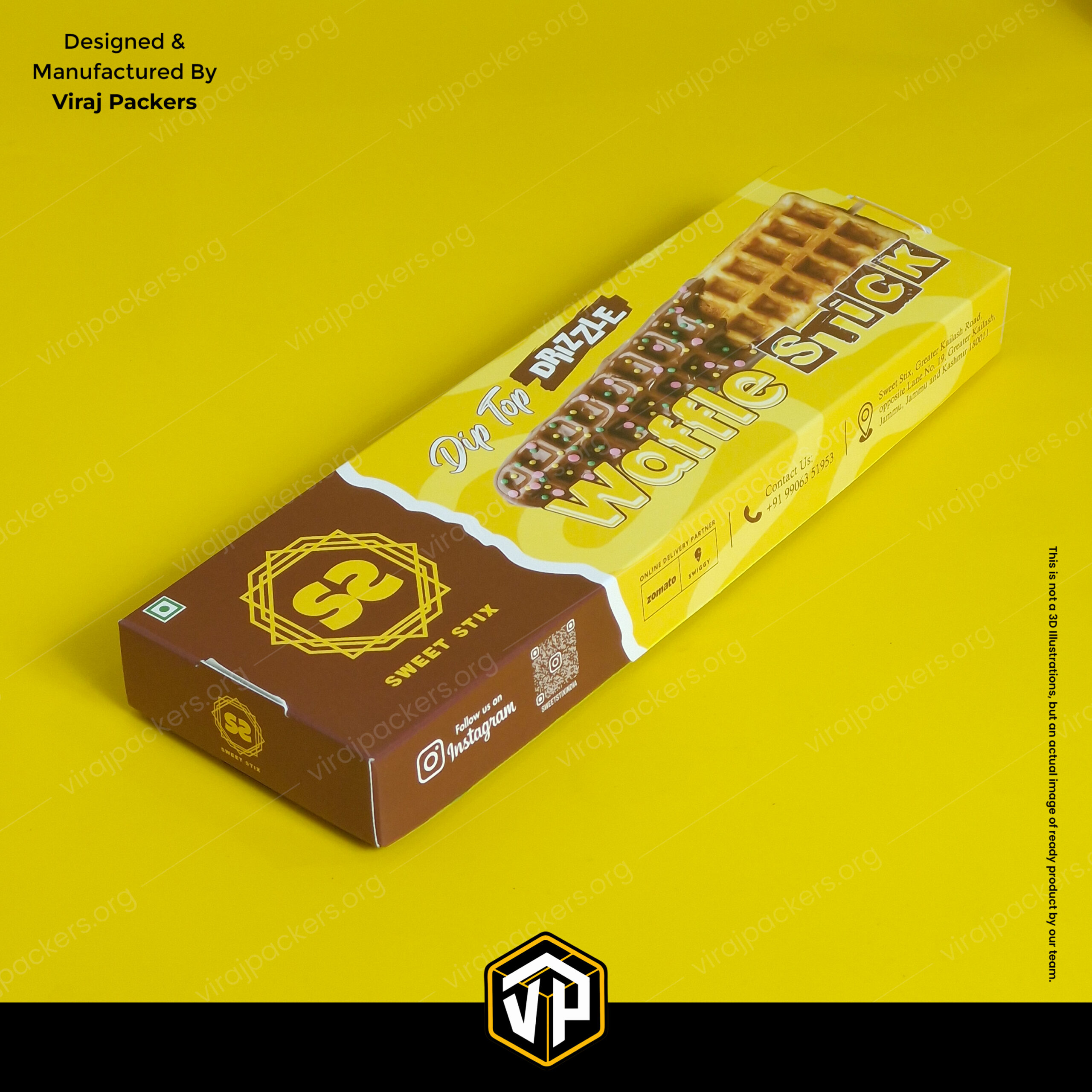 At Viraj Packers – Leading Food Packaging Manufacturers in India, we offer high-quality, food-grade waffle boxes that perfectly hold stick waffles without leakage or mess. These boxes come with a smart grip design, making them ideal for customers to enjoy waffles on the go.