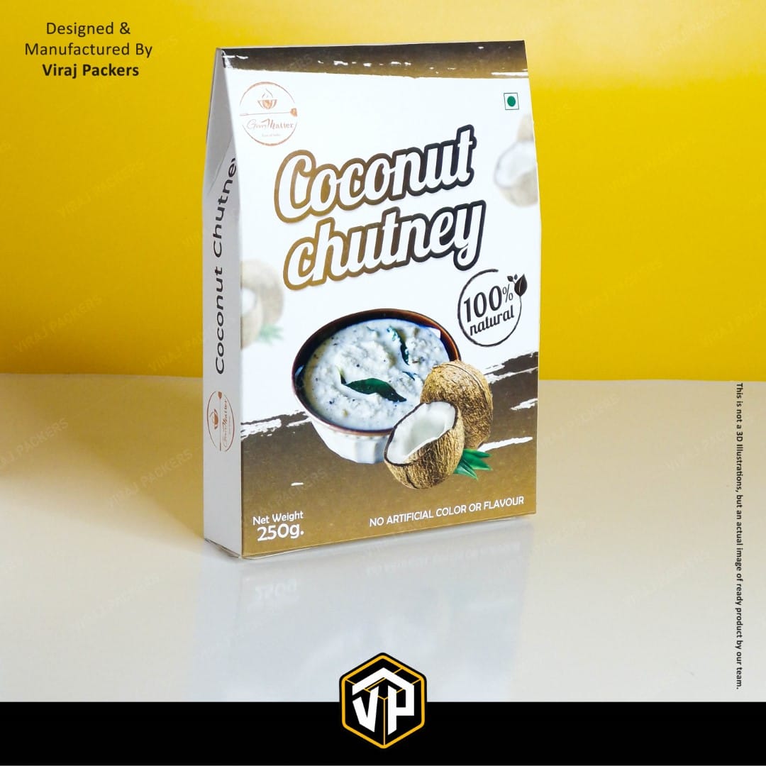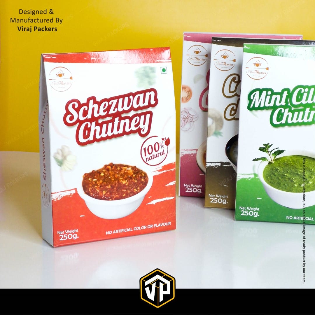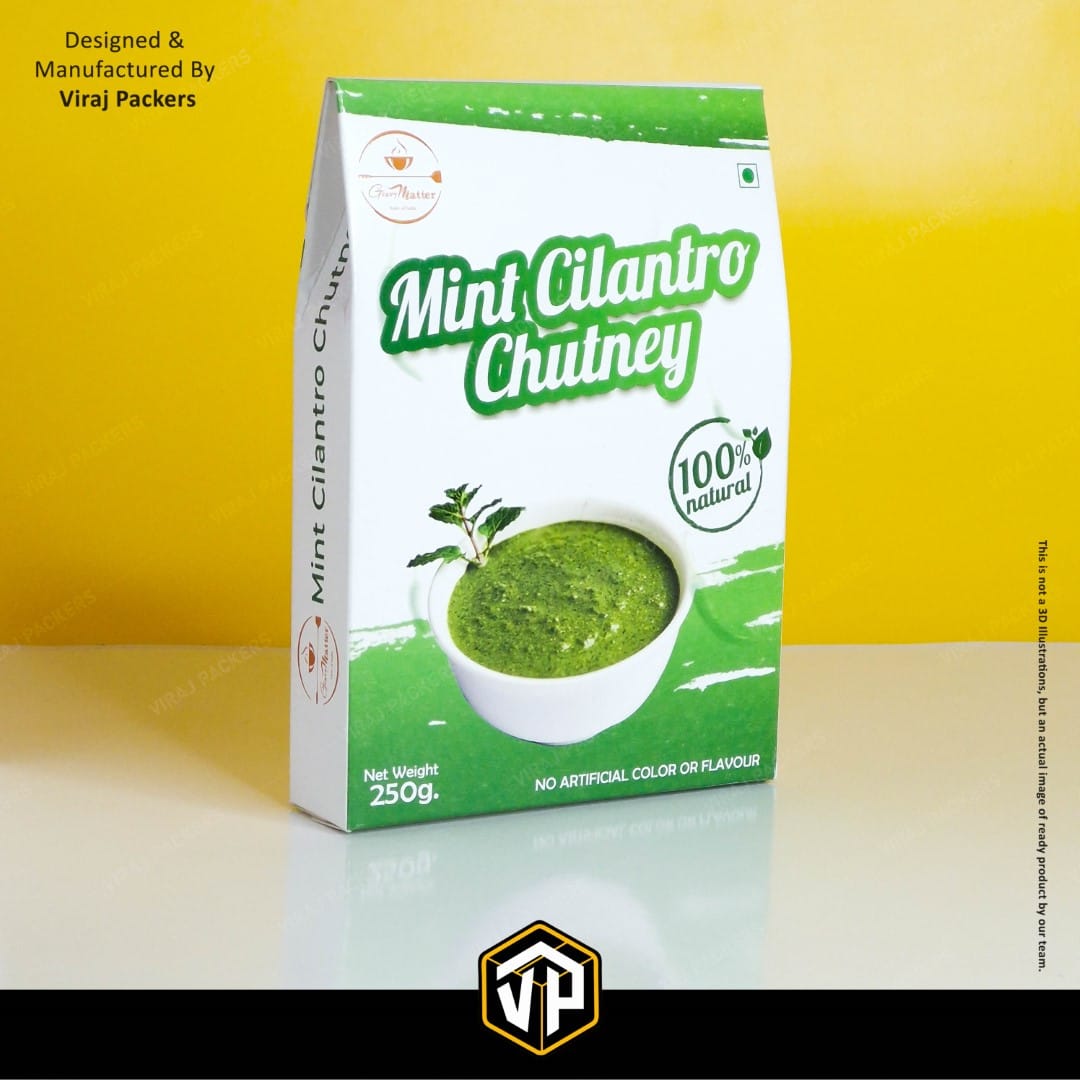 The 250 Gm size is perfect for chutney jars or pouches, making it ideal for retail shelves, festive gifting, and export packaging. With custom printing and branding options, you can display your logo, product information, and vibrant graphics enhanced with finishes like matte, gloss, UV, or foil stamping.