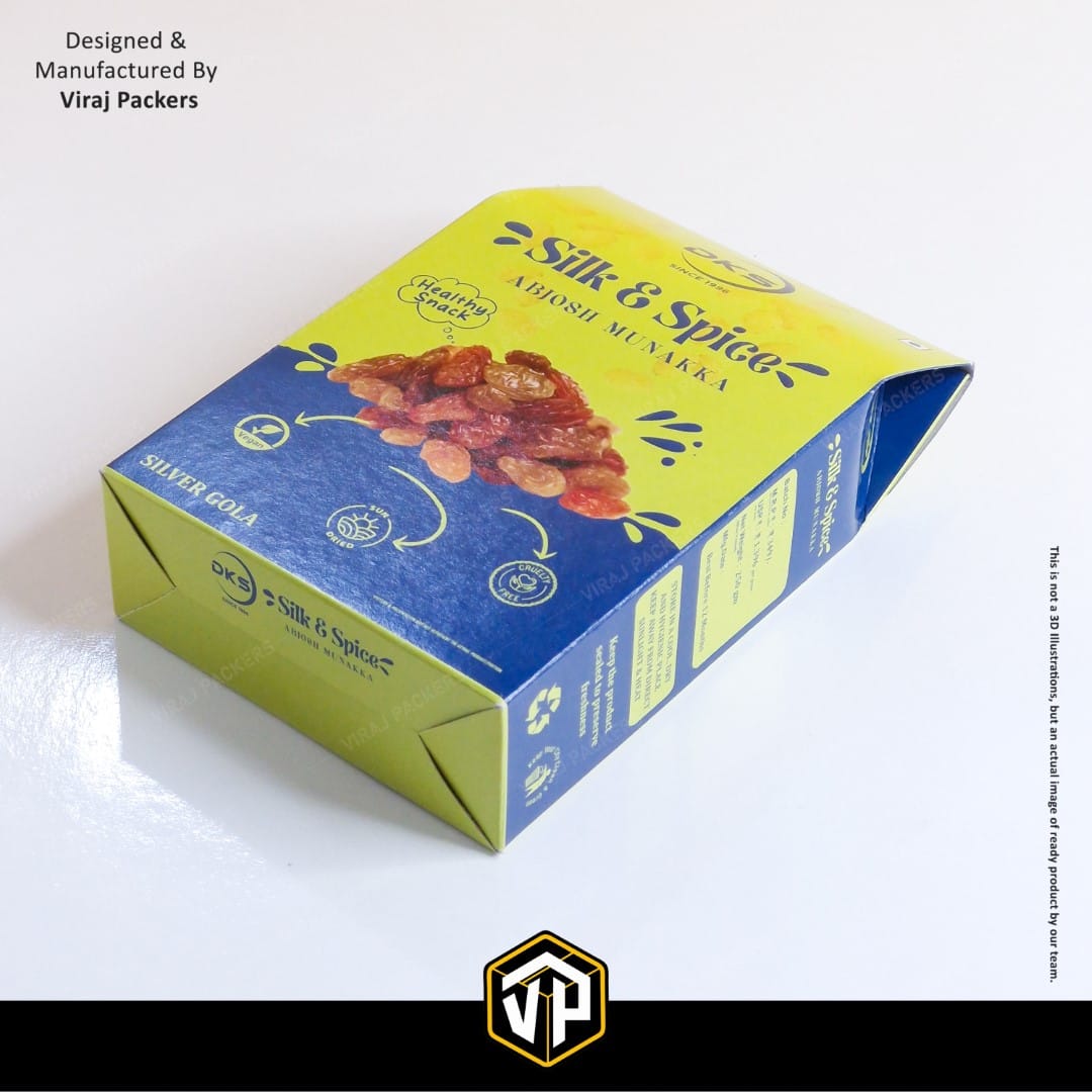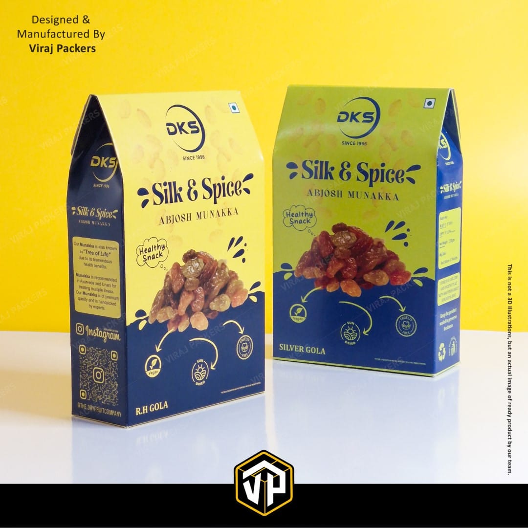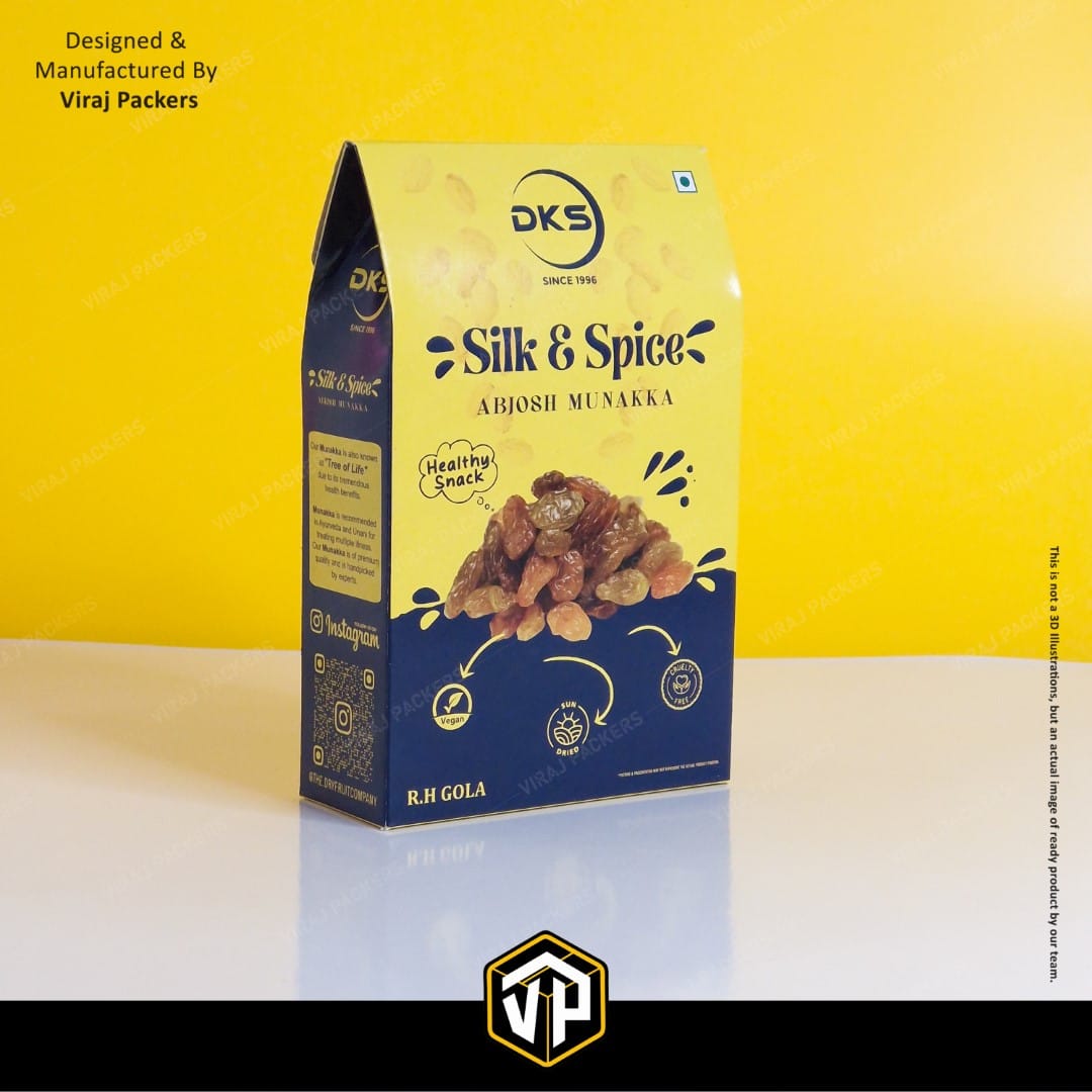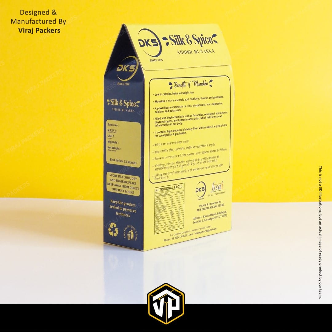 Ideal for munakka, raisins, almonds, cashews, and other dry fruits, this packaging is eco-friendly, recyclable, and market-ready. Whether for festive gifting, retail display, or exports, our custom pyramid-shaped dry fruit boxes create a lasting impression while protecting product quality.