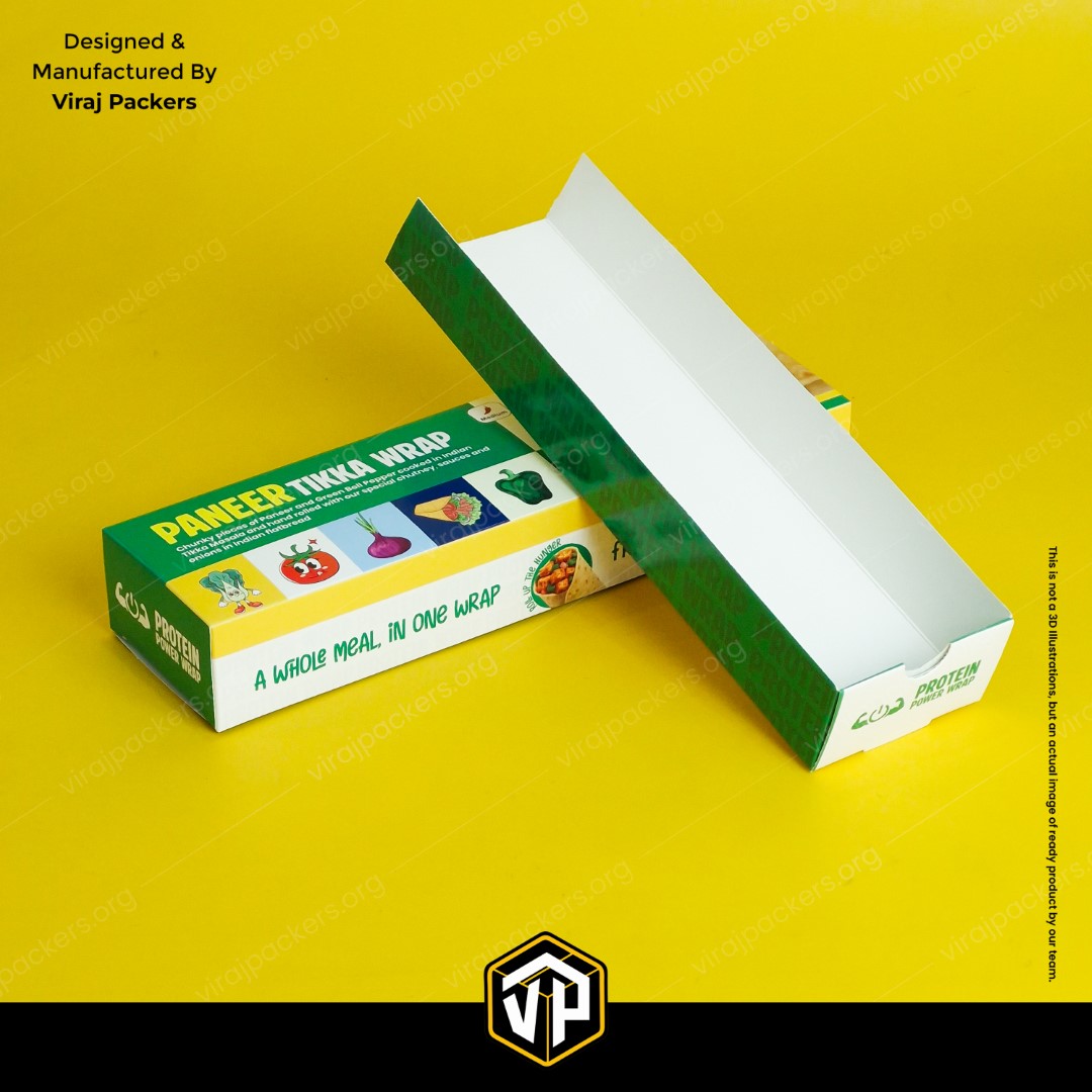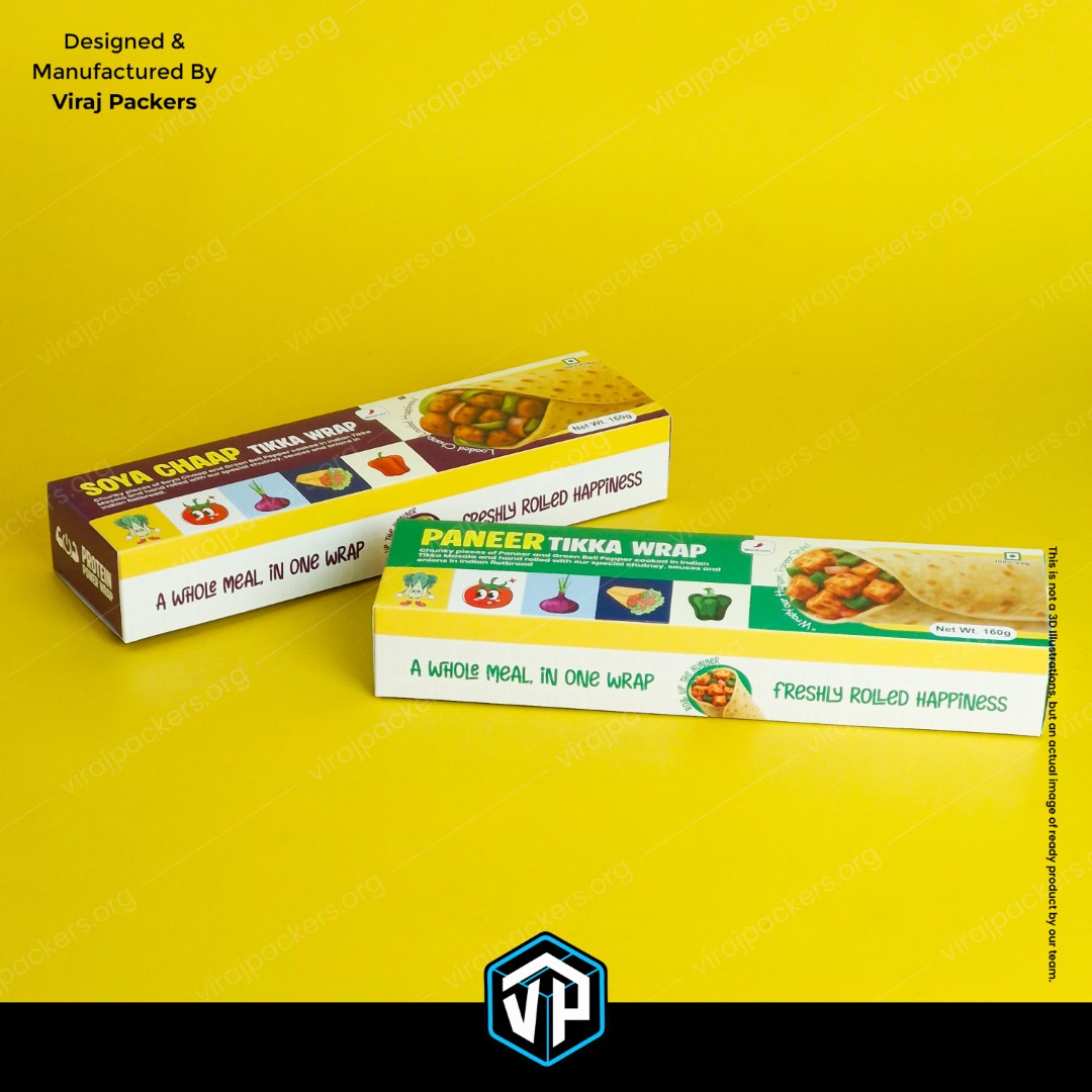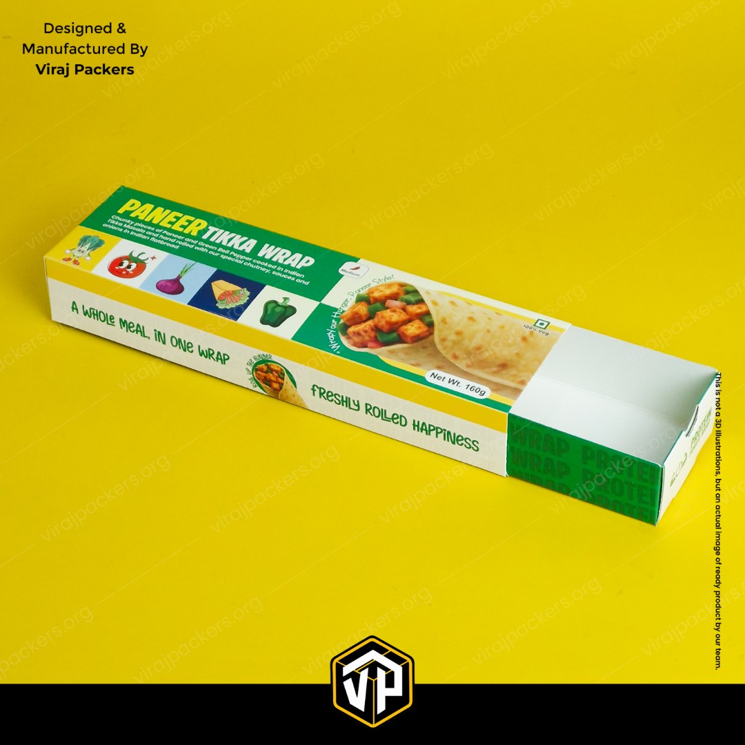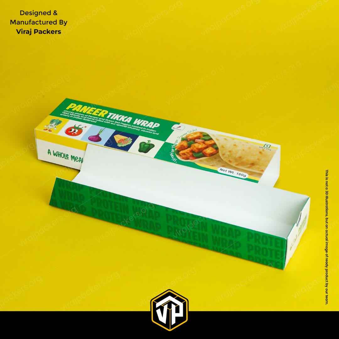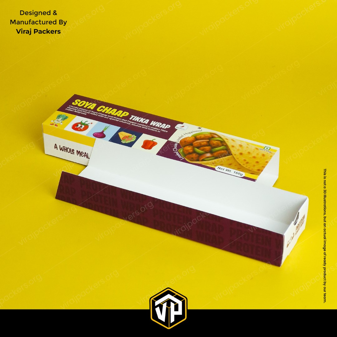 Made from high-quality food-grade paperboard, this box is ideal for wraps, shawarma rolls, burritos, frankie rolls, paneer tikka wraps, chicken wraps, and more. The sturdy structure prevents crushing, while the snug fit keeps the wrap intact during takeaway and delivery.