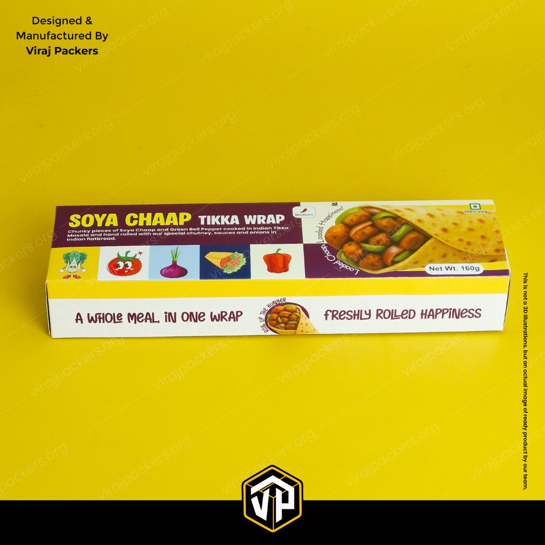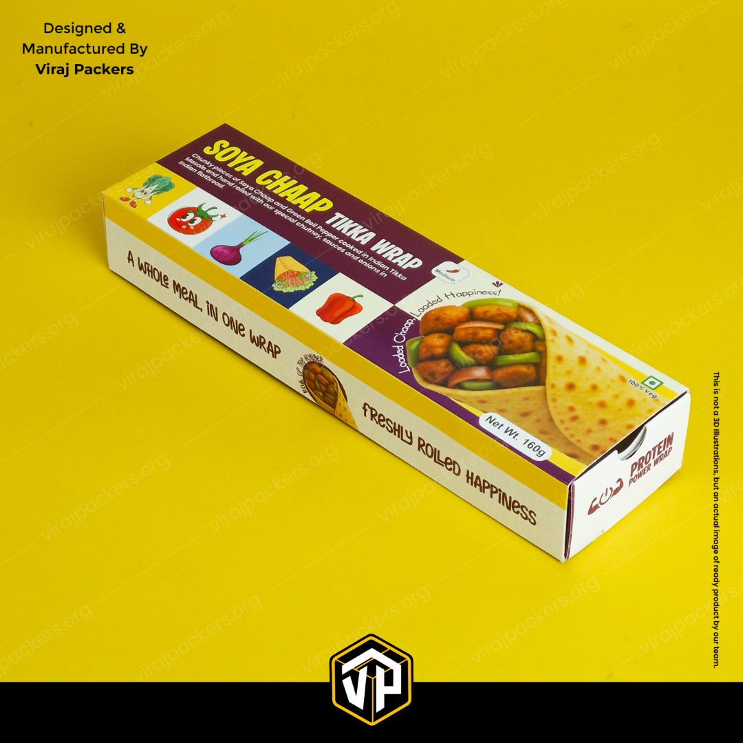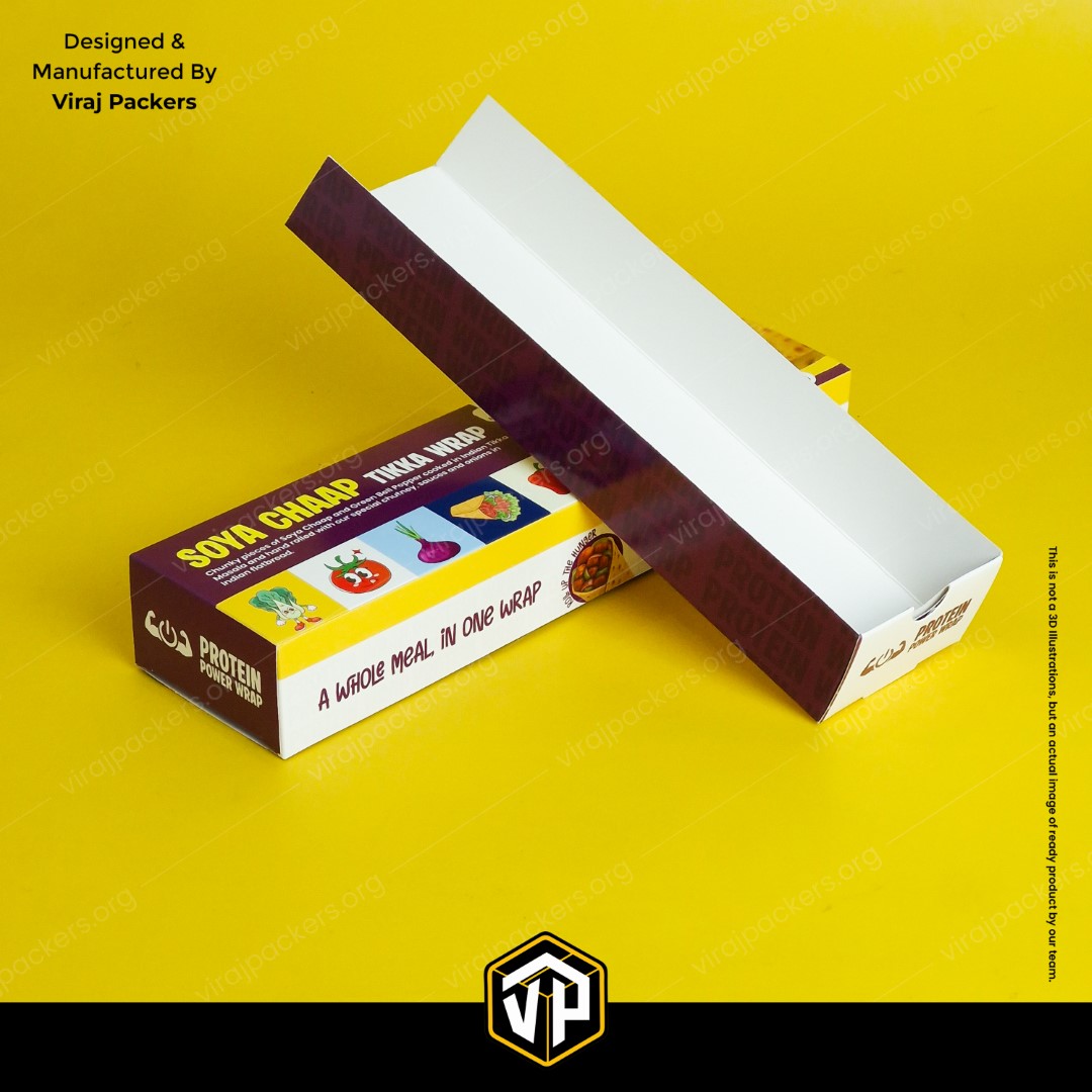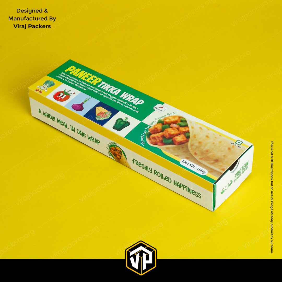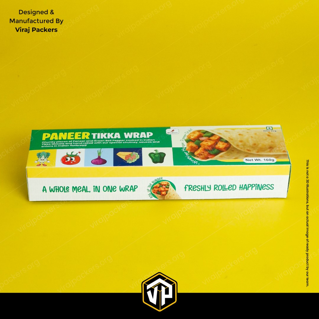 Made from high-quality food-grade paperboard, this box is ideal for wraps, shawarma rolls, burritos, frankie rolls, paneer tikka wraps, chicken wraps, and more. The sturdy structure prevents crushing, while the snug fit keeps the wrap intact during takeaway and delivery.