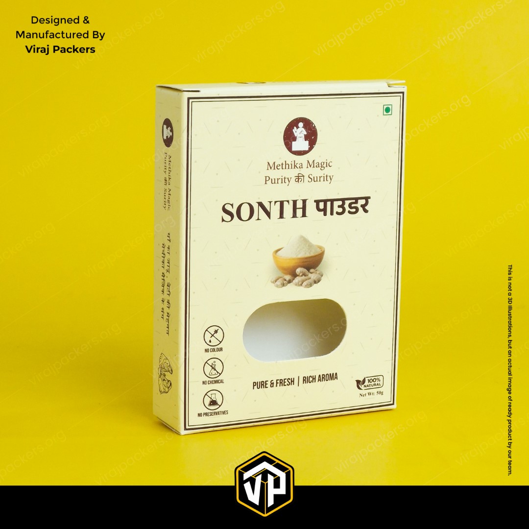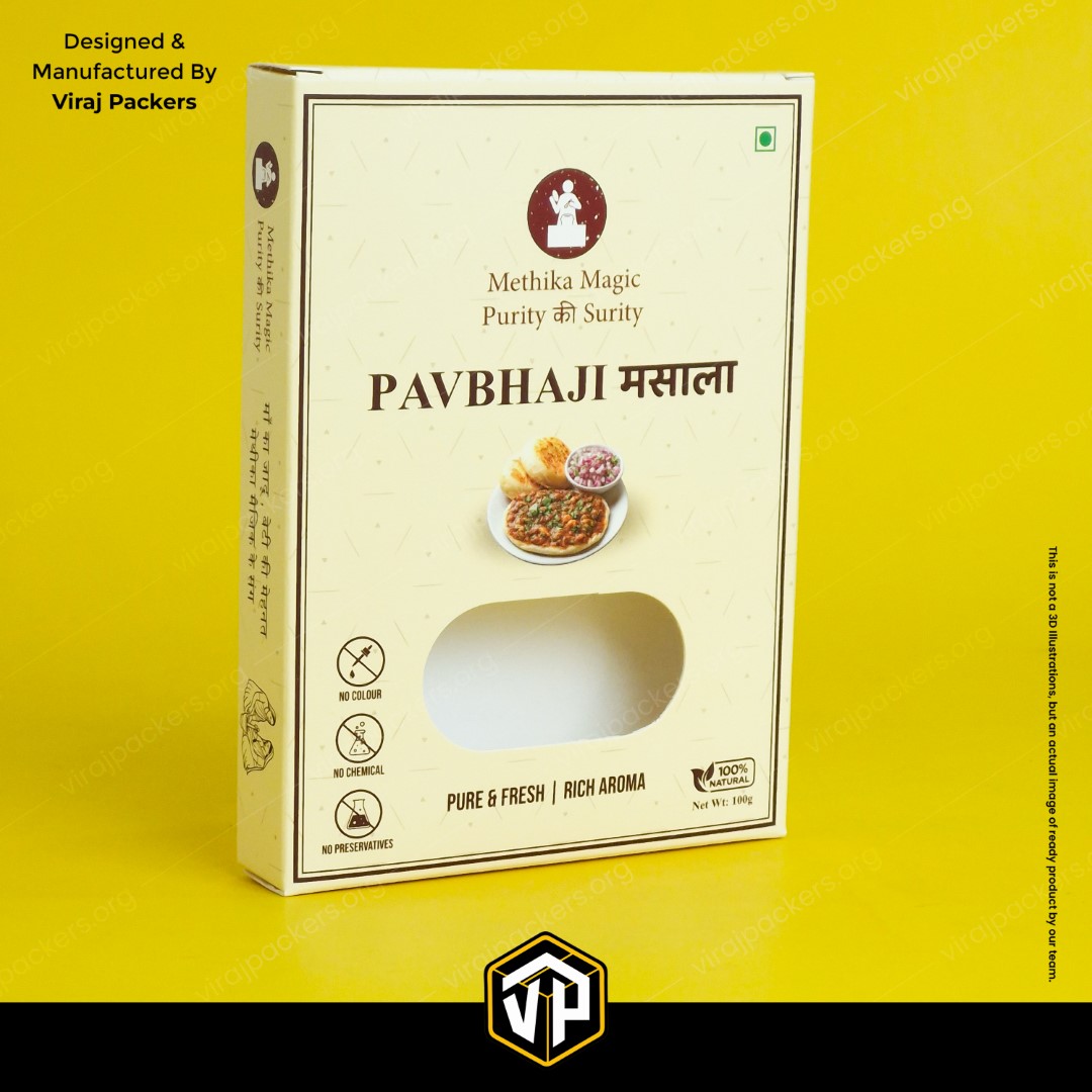 Our Spices Packaging Box with Window Cutting is designed to enhance shelf appeal while maintaining product freshness. Made from high-quality food-grade paperboard, this box comes with a transparent window that allows customers to view the spices inside, building instant trust and premium visibility.